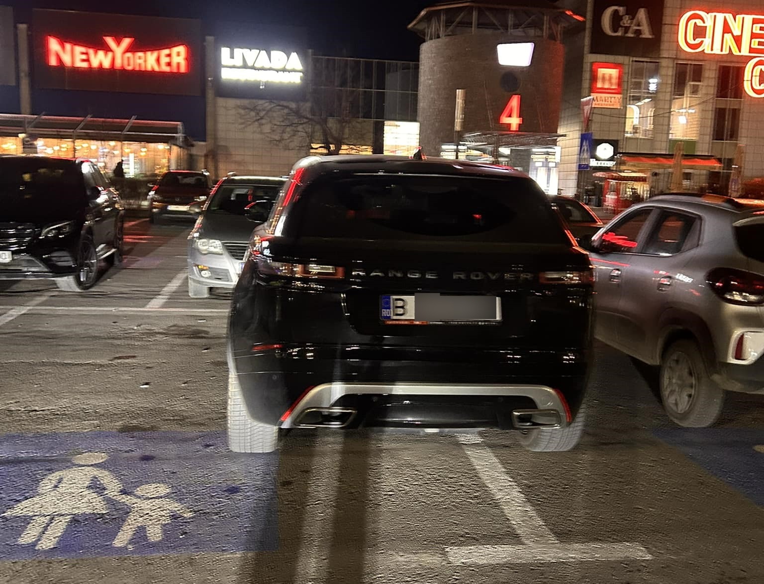 Poate așa se poate explica de ce un șofer de Range Rover, cu numere de București, a simțit nevoia să își lase mașina pe două locuri de parcare, gândindu-se că și așa mall-ul Vivo are destule loturi pentru restul oamenilor. Și dacă acest tupeu nu era deja suficient de mare, el și-a lăsat mașina peste două locuri dedicate explicit familiilor.