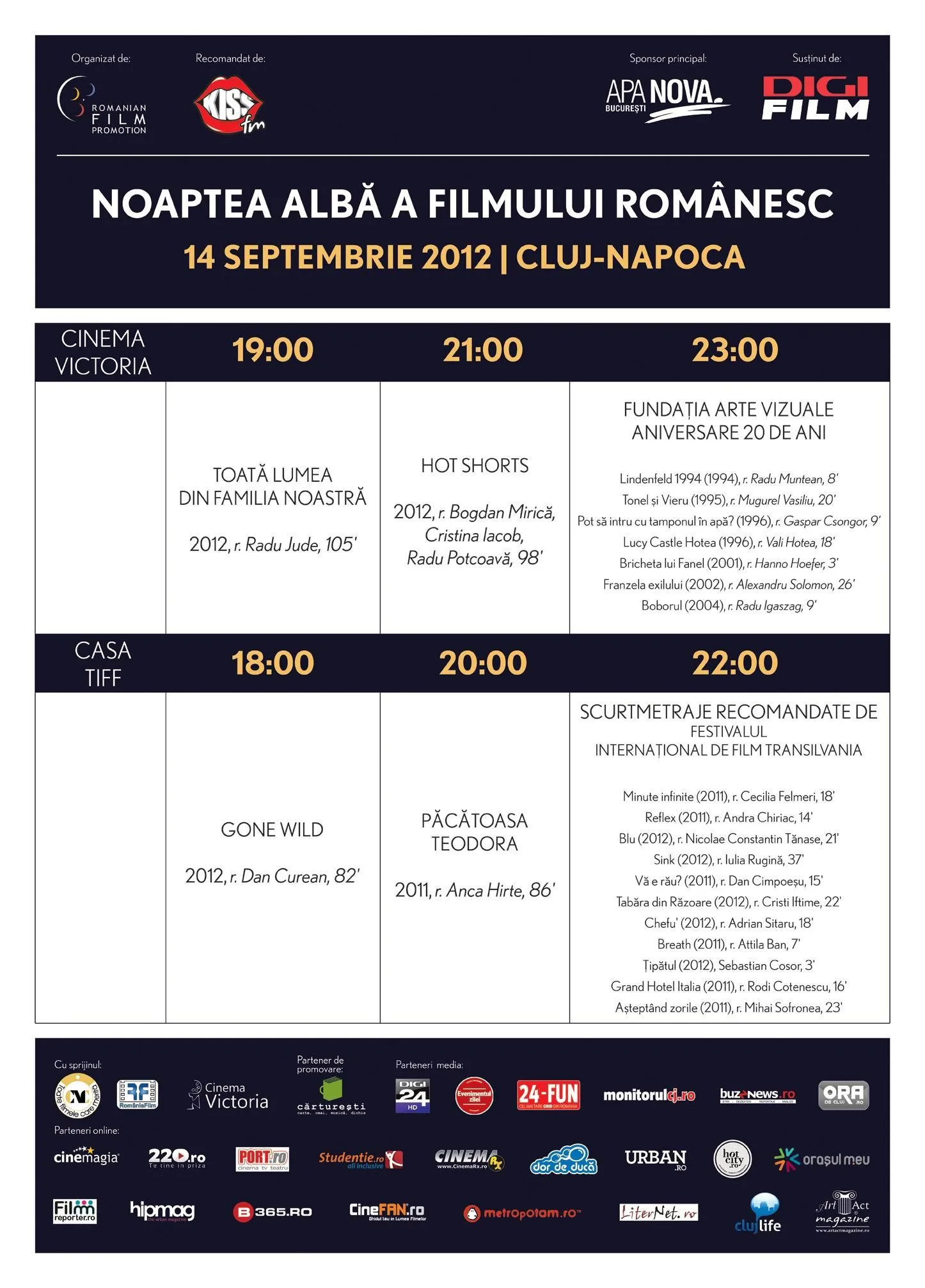 Cea de-a treia ediţie a evenimentului Noaptea Albă a Filmului Românesc va avea loc pe data de 14 septembrie 2012, în Cluj.