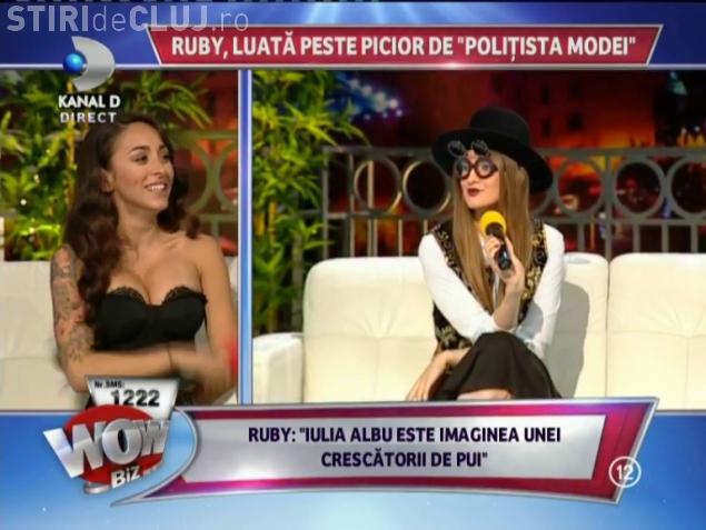 "Am inteles ca Iulia Albu este imaginea Avicola. Eu sunt o fata foarte buna dar asta credeam eu despre ea. Nu stiam ca se ocupa cu fashion police. Nu umbla ea cu gaina?", a spus Ruby în emisiunea WowBiz.