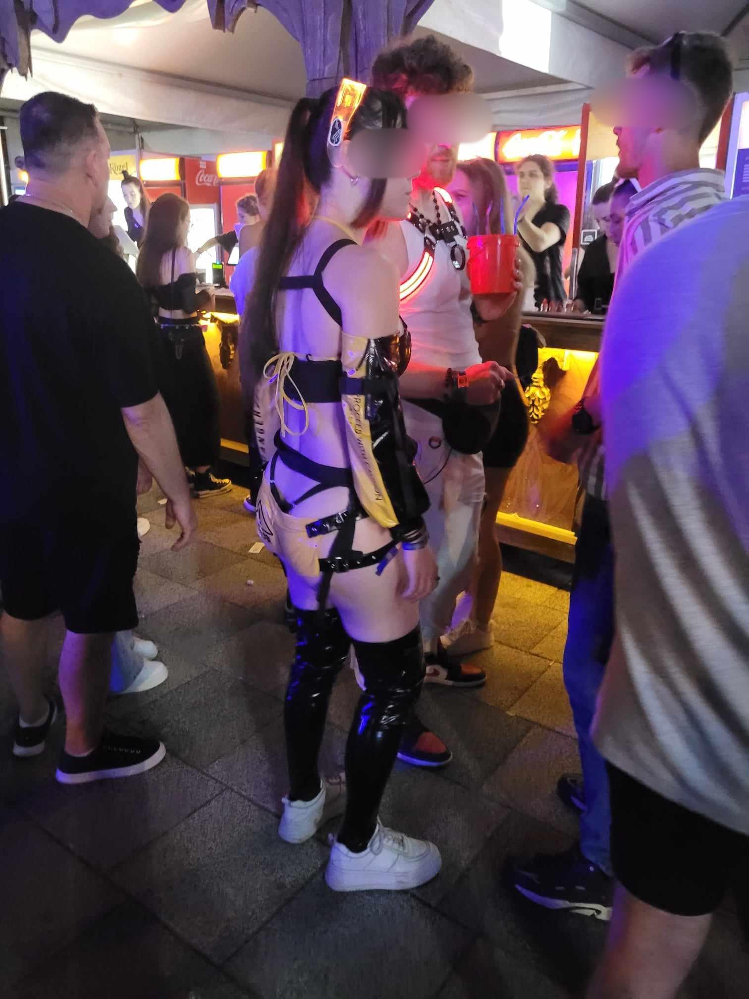 Una dintre participante, îmbrăcată într-un „costum” mai deocheat avea chiar un indicator de avertizare pe fund, probabil pentru cei care riscă să sufere de la entuziasmul în exces.