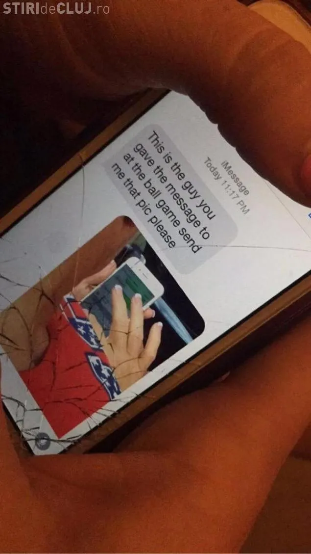 Două surori, spectatoare pe stadion, au reușit să fotografieze mesajele pasionale, peste umarul femeii, iar apoi le-au postat pe Twitter.