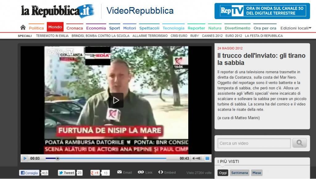 In film apare reporterul Realitatea TV care vorbeste despre o furtuna de nisip de pe plaja, dar in imagini apare un alt barbat care ridica nisipul de pe plaja, pentru a simula o furtuna de nisip.
