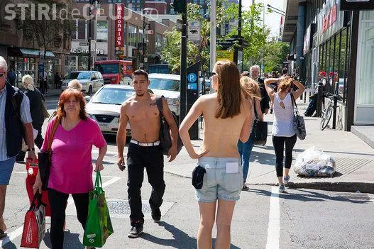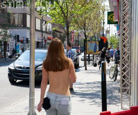 ”Nu sunt membră a mişcării Femen, nu sunt o mamă care alăptează şi nici o fetiţă de trei ani care stă la piscină. Sunt o femeie în toată firea, jurnalist de meserie şi vreau să fac un documentar despre reacţia oamenilor atunci când văd o femeie la bustul gol pe stradă”, îşi explica gestul jurnalistul Huffington Post, Lili Boisvert, care a defilat la bustul gol prin centrul oraşului Montreal.