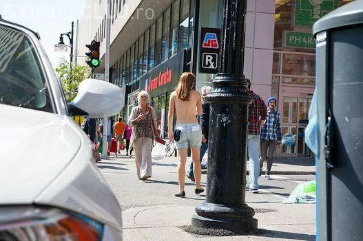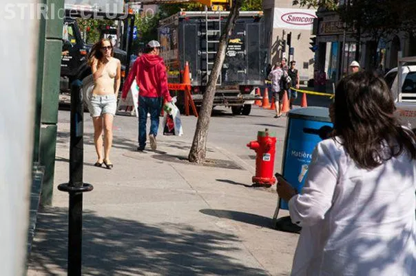 O jurnalistă s-a dezbrăcat la bustul gol pentru a vedea care este reacția oamenilor, când o văd în sânii goi.