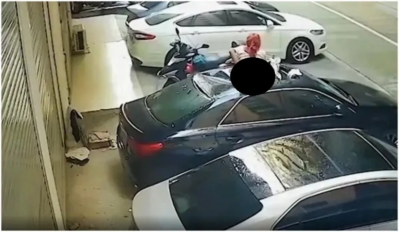 O tânără a căzut de la etaj în timpul unui moment intim cu prietenul ei în Taiwan. Ea a aterizat pe plafonul unei mașini și s-a ales doar cu câteva răni superficiale.