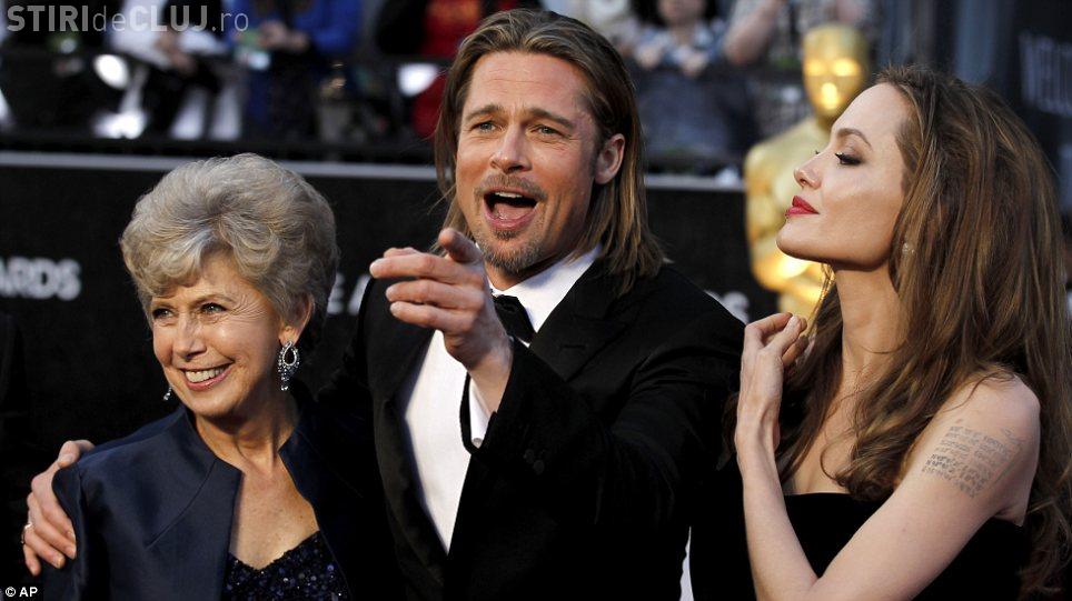 Angelina Jolie a ales si ea o rochie neagra. Vedeta a aparut pe covorul rosu la brat cu Brad Pitt si de soacra ei, Jane.