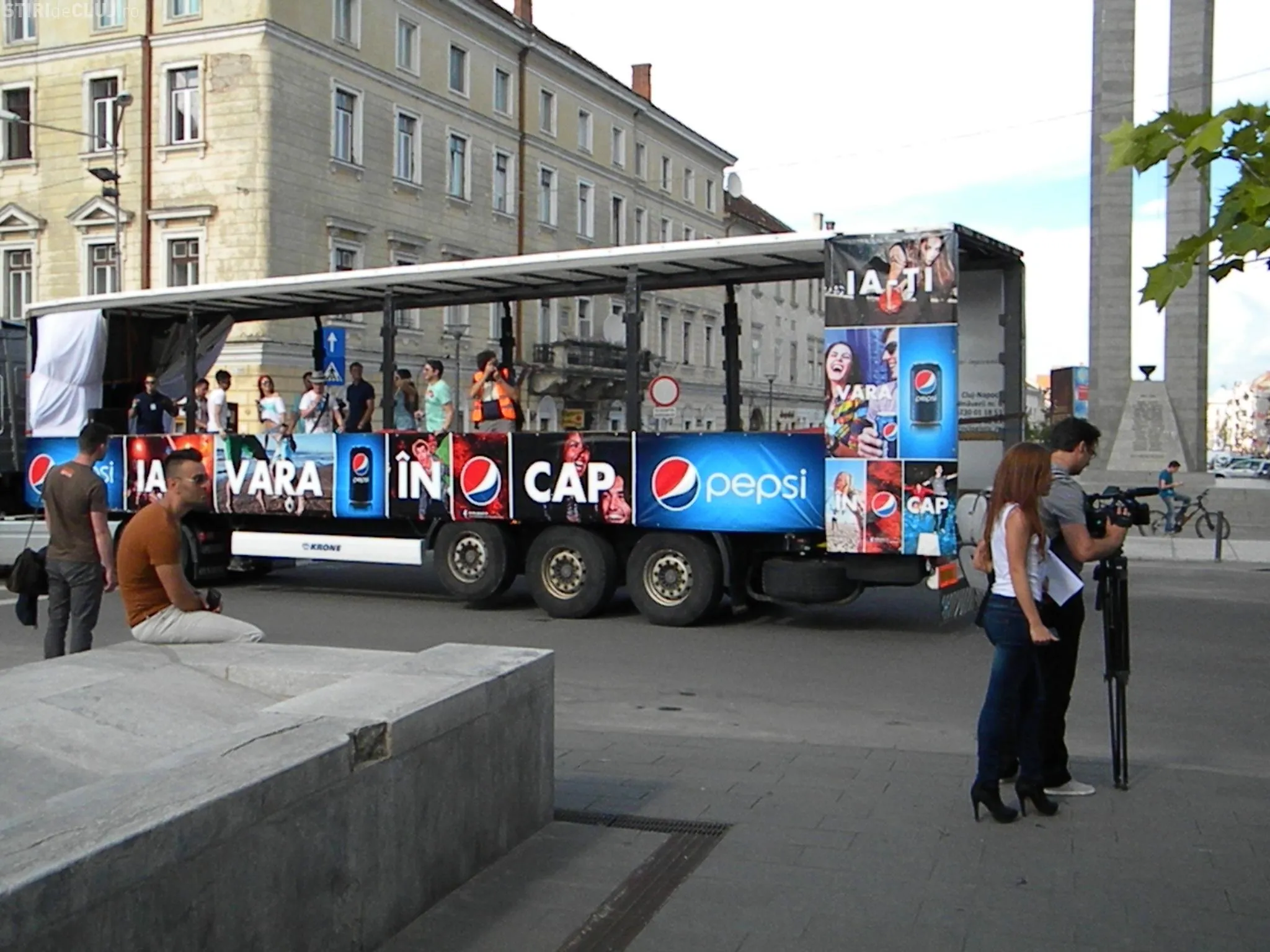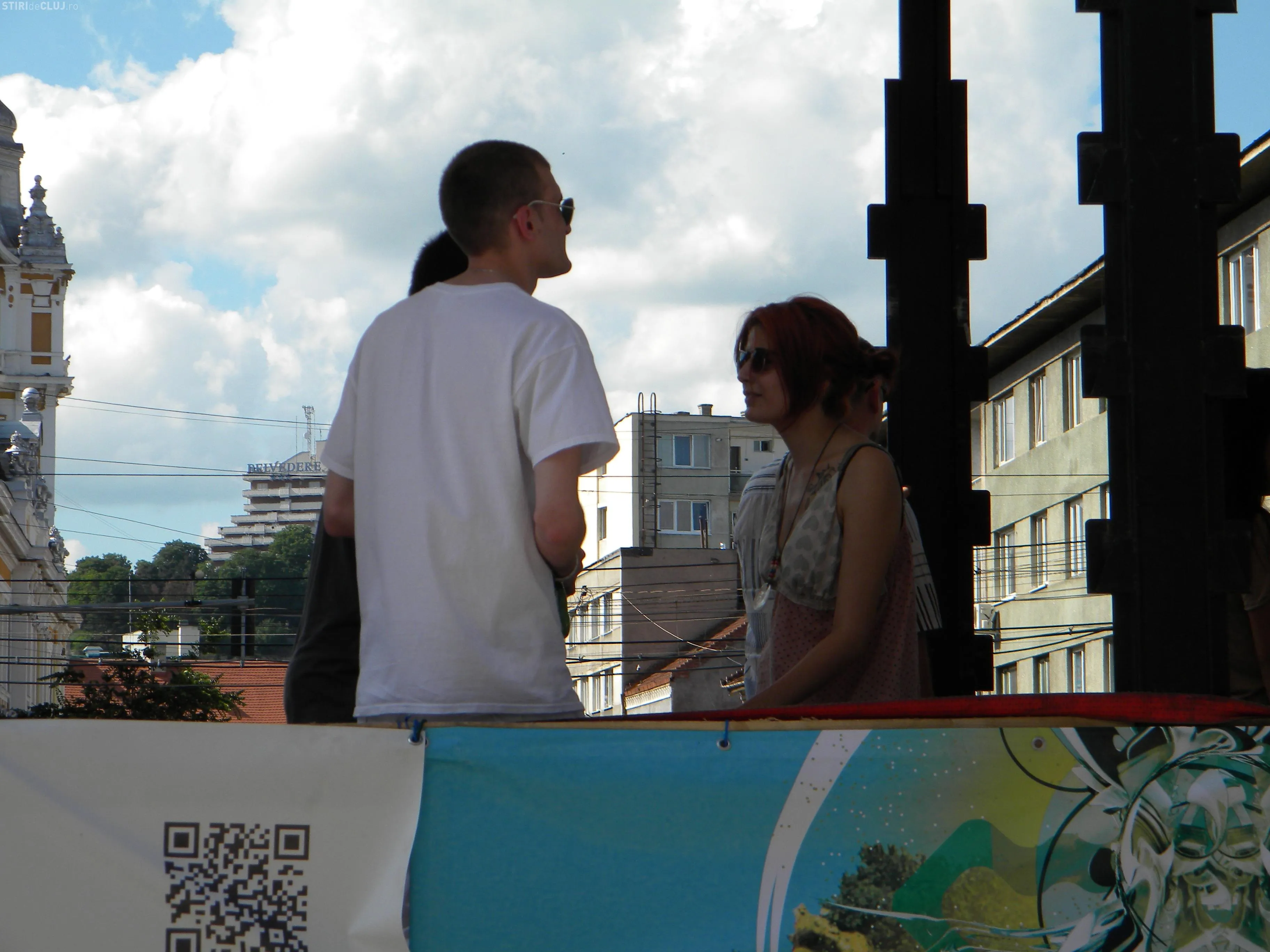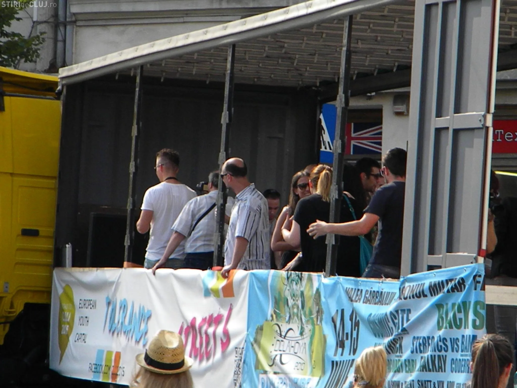 În lipsa animatoarelor care să îi cheme pe clujeni în cele două camioane, băieții au încercat să mai anime puțin atmosfera, dar fără prea mult succes.
