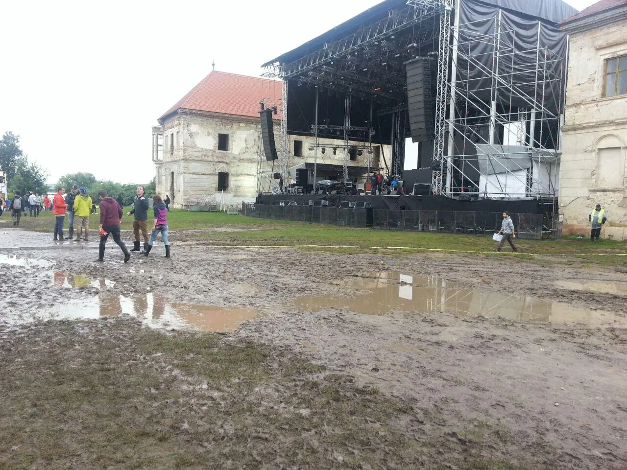Ploaia le dă bătăi de cap festivalierilor care s-au instalat deja la Electric Castle, curtea castelului fiind plină de bălți și noroi.