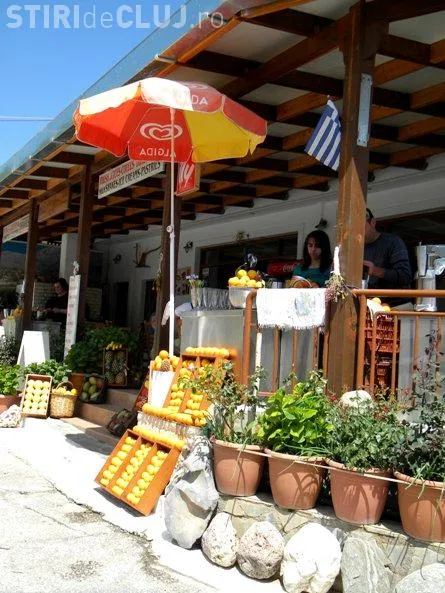 Am fost invitati sa ne asezam la o terasa situata chiar la poalele muntelui: "Kalimera!" (Buna ziua) a fost salutul cu care am fost intampinati tot timpul in Creta. Multi dintre localnici rup deja cateva cuvinte in limba romana "Bine ati venit", "Buna ziua" , par sa fie deja ceva banal pentru cei care ne poftesc la mese.