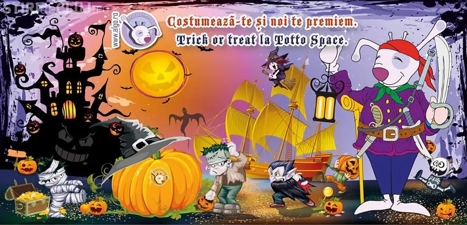 Surprizele „înfricoşătoare” continuă! Tot sâmbătă, năzdrăvanii sunt aşteptaţi la Halloween Party, organizată de Totto Space KidsLand, din Iulius Mall. Invitaţii se vor distra copios, într-un cadru desprins din basme. Alături de curajosul Totto, micuţii vor porni într-o aventură extraordinară, condimentată cu bostani sculptaţi, personaje de poveste, măşti artistice şi multe activităţi care le vor oferi nenumărate zâmbete. Ştrengarii care vor să meargă la cea mai veselă petrecere de Halloween se pot echipa cu un costum original, iar Totto îi va premia.