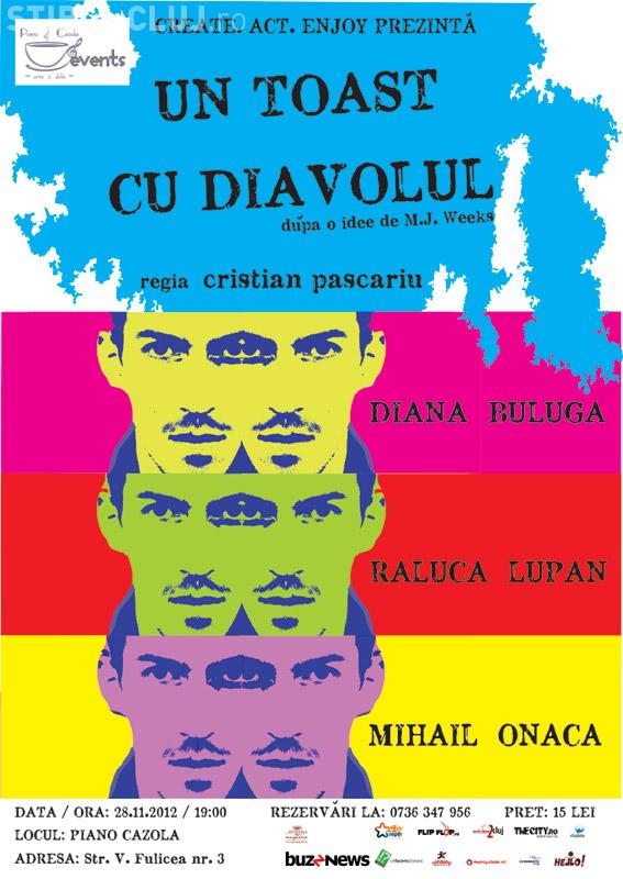 Piesa de teatru ”Un toast cu diavolul” se joacă miercuri, 28 noiembrie, ora 19.00, la Piano Cazola, Cluj-Napoca.