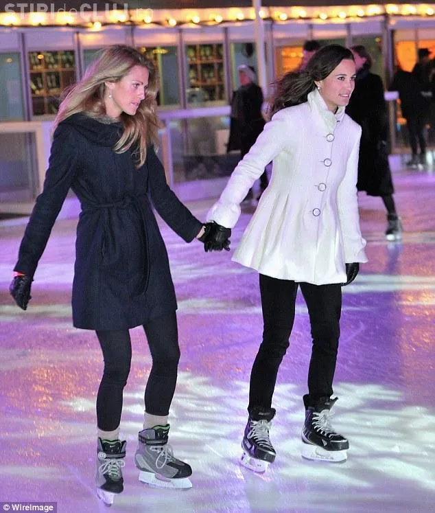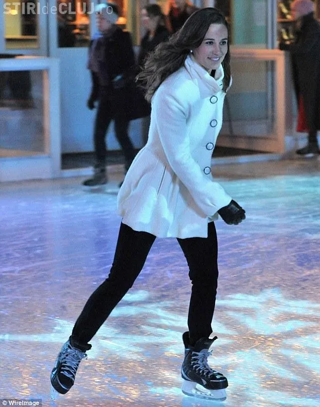 Pippa a fost insotita de o prietena si si-a etalat talentul de patinatoare. Ea a purtat un palton de culoare alba, asortat cu blugi negri si manusi in aceeasi culoare.