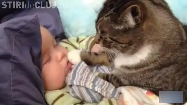 Pisici adorabile lângă BEBELUȘI - Imagini care te vor emoționa - VIDEO