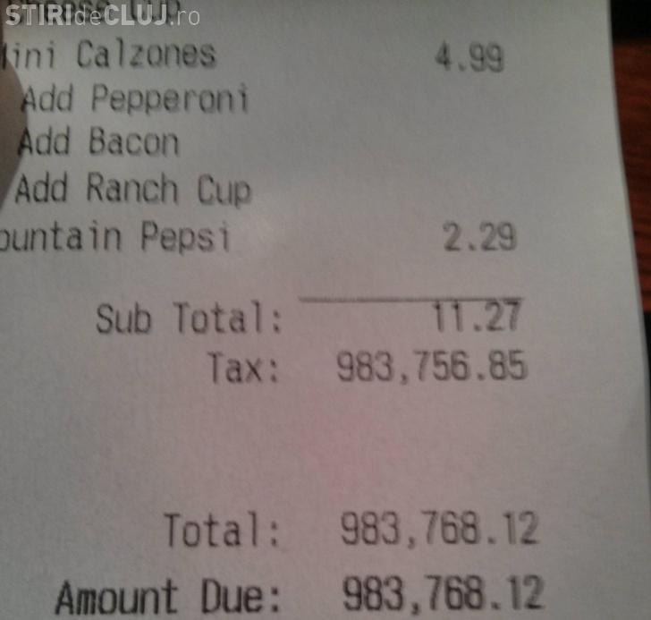 Un utilizator al site-ului de divertisment Reddit a postat o fotogragie cu nota de plată primită într-o pizzerie, după ce și-a cumpărat câteva gustări.