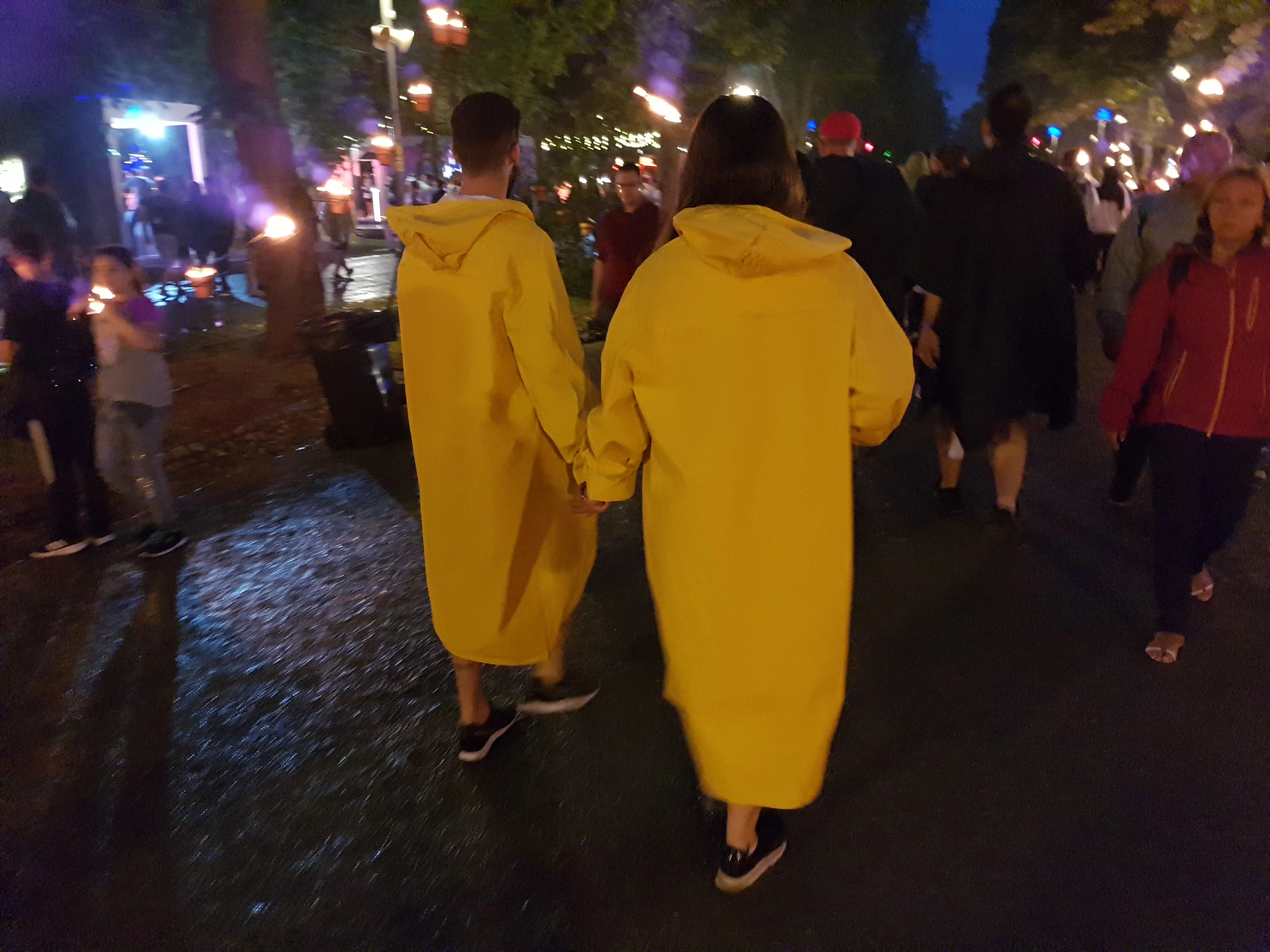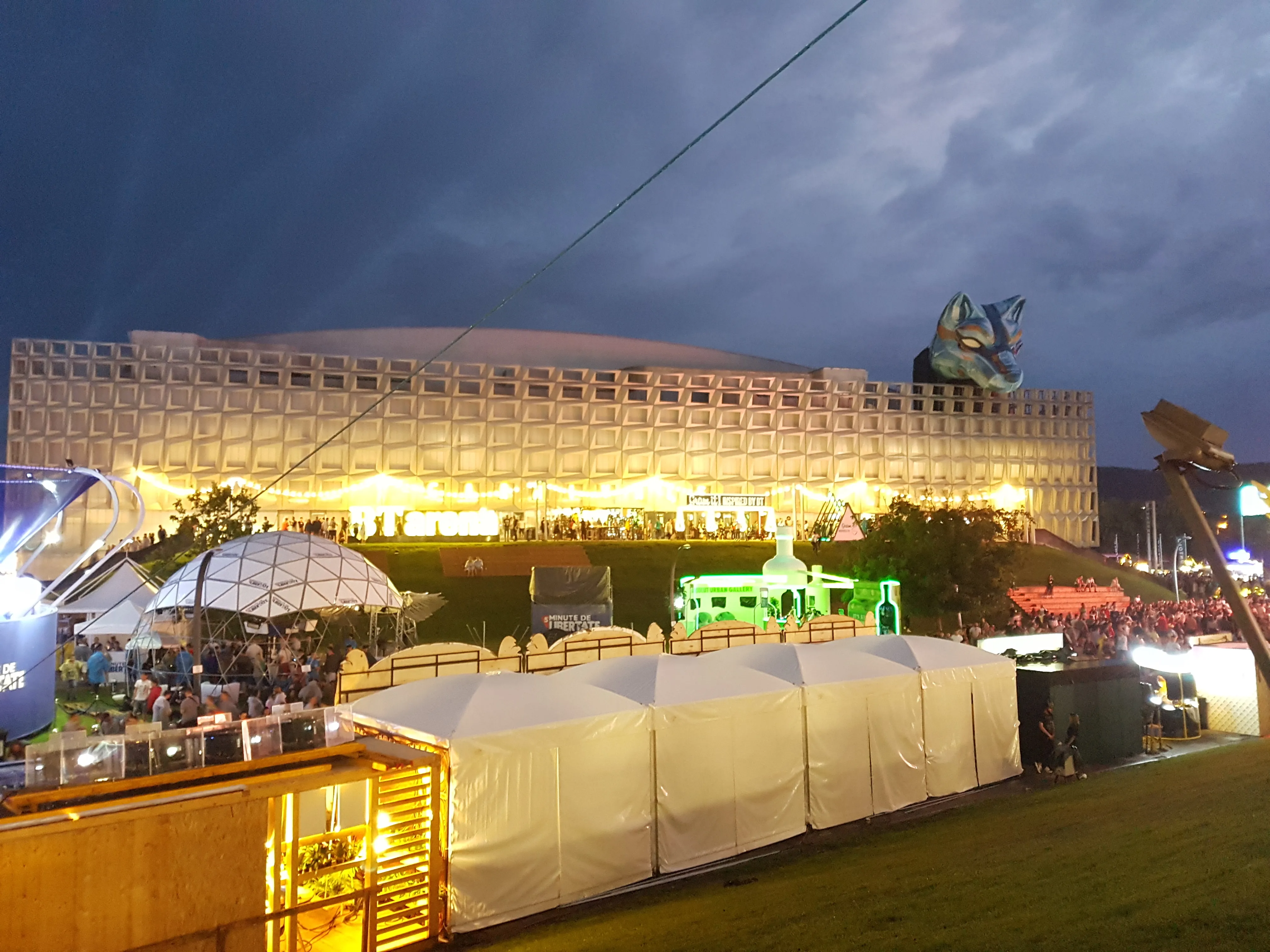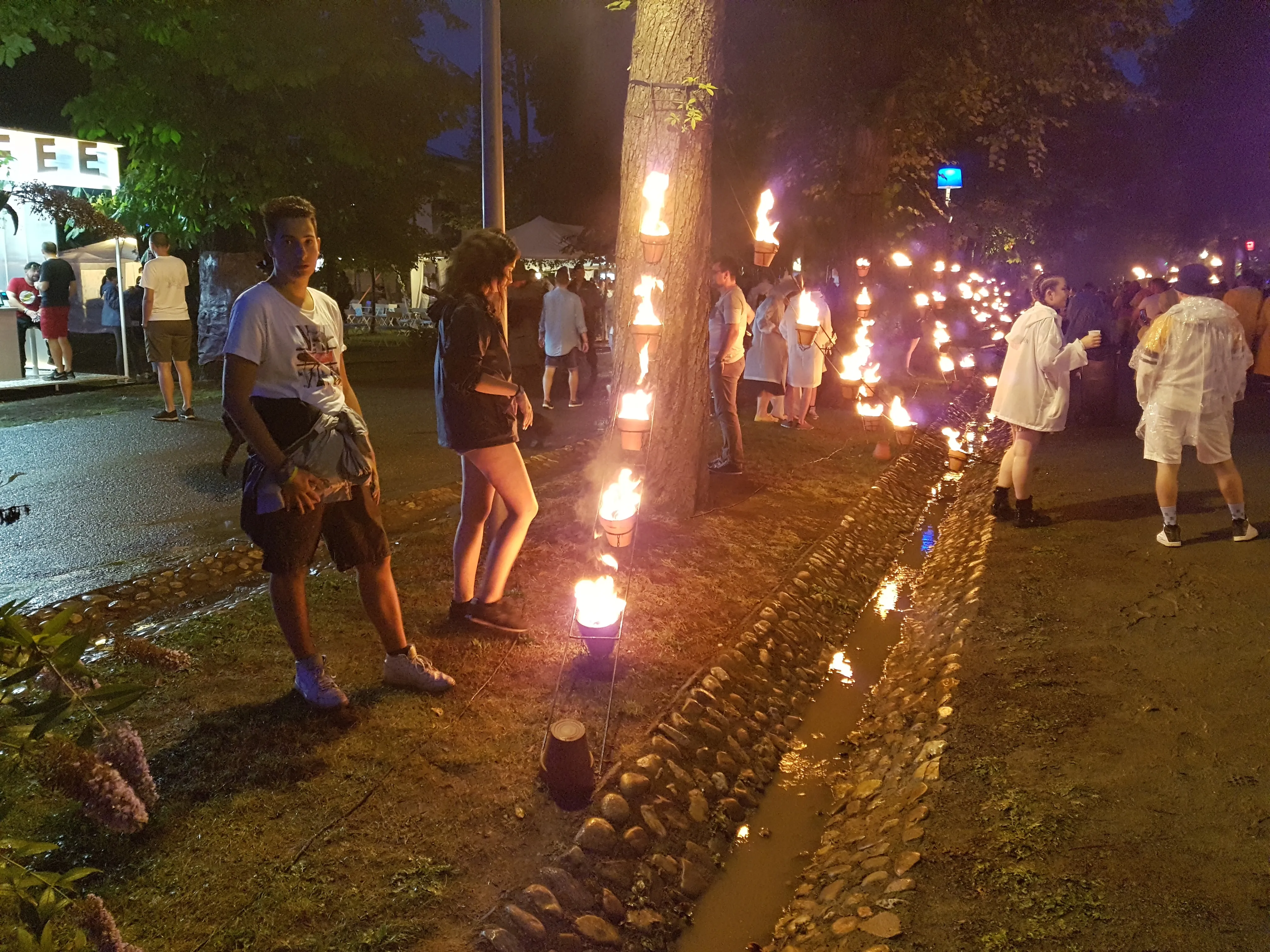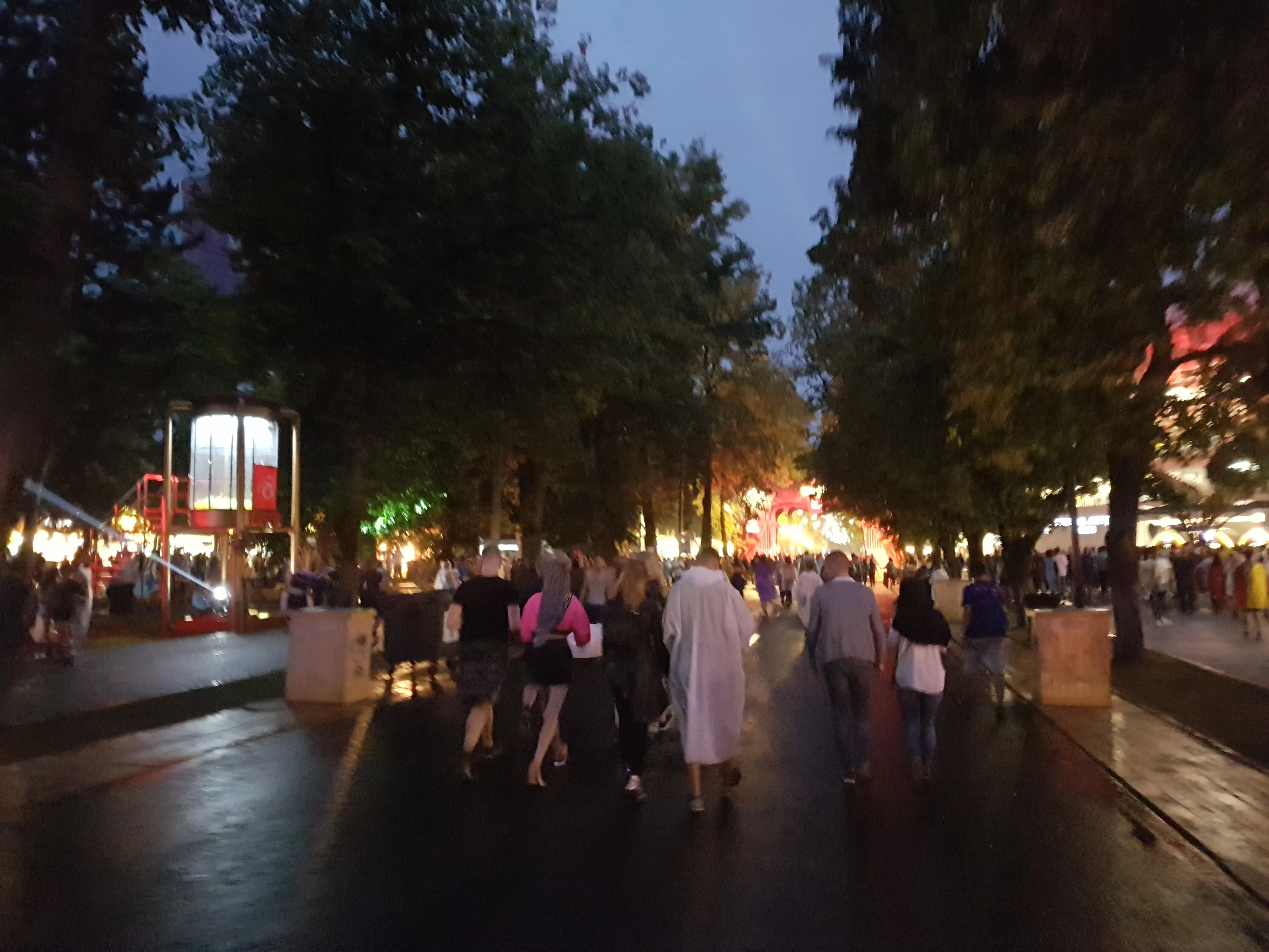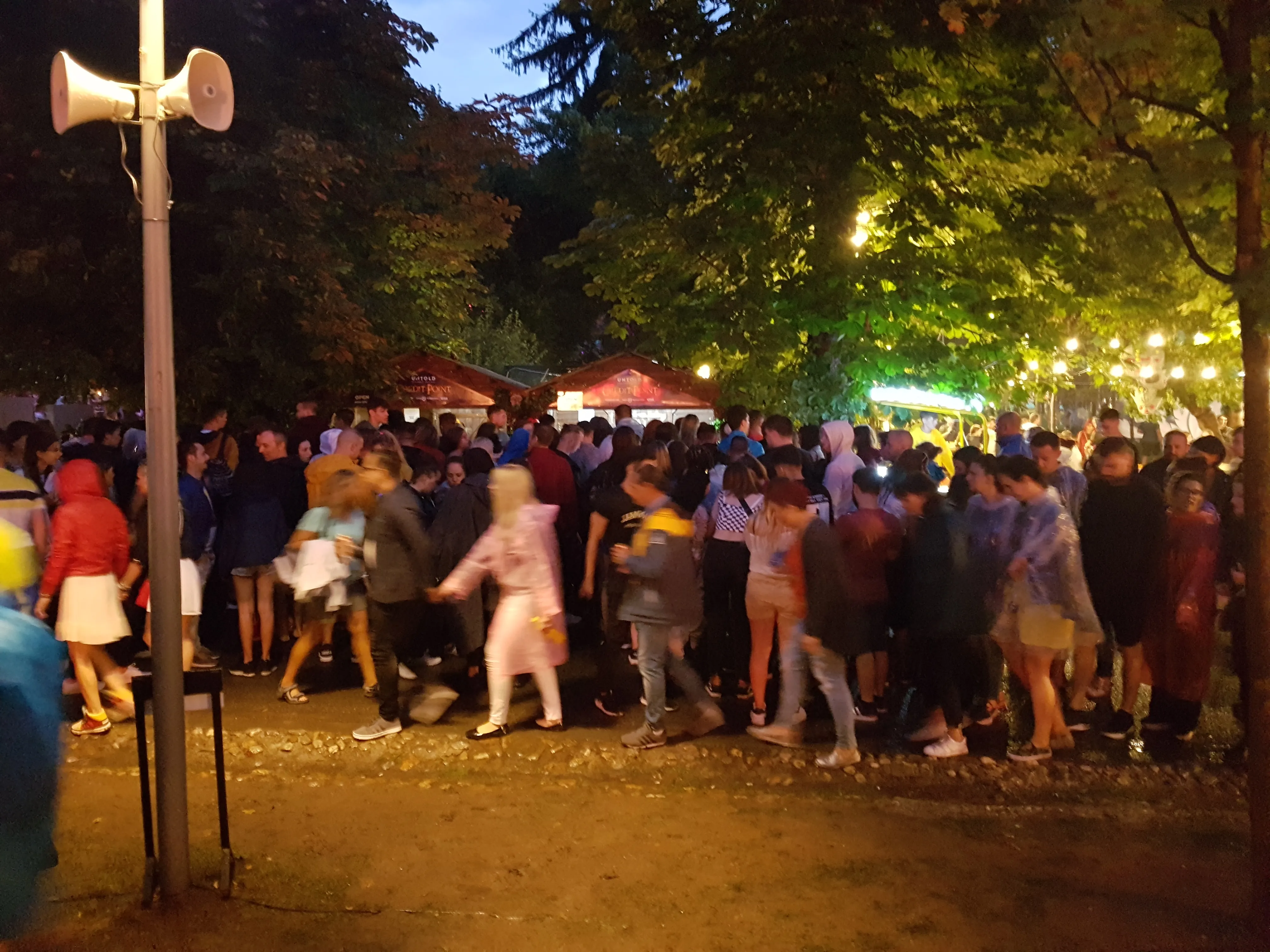 Chiar daca distractia a inceput cu o ploaie puternica, lucrurile s-au calmat in jurul orei 21.30, iar acum atmosfera este incredibila.