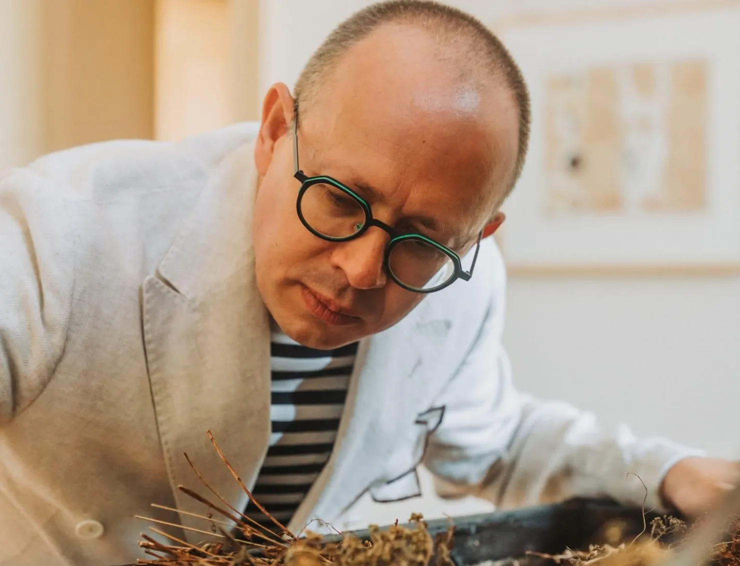 Dar momentul cel mai emoționant a venit în fața unui cufăr vechi, plin cu plante uscate. „Am zăbovit mult, mângâind lemnul mâncat de cari și încheieturile metalice”, spune el. Curios să afle mai mult, a apelat la ghidul castelului pentru a lua legătura cu artistul. „L-am rugat pe ghidul castelului să-l sune pe artist: e un turist aici care cere lămuriri despre cufăr!…”