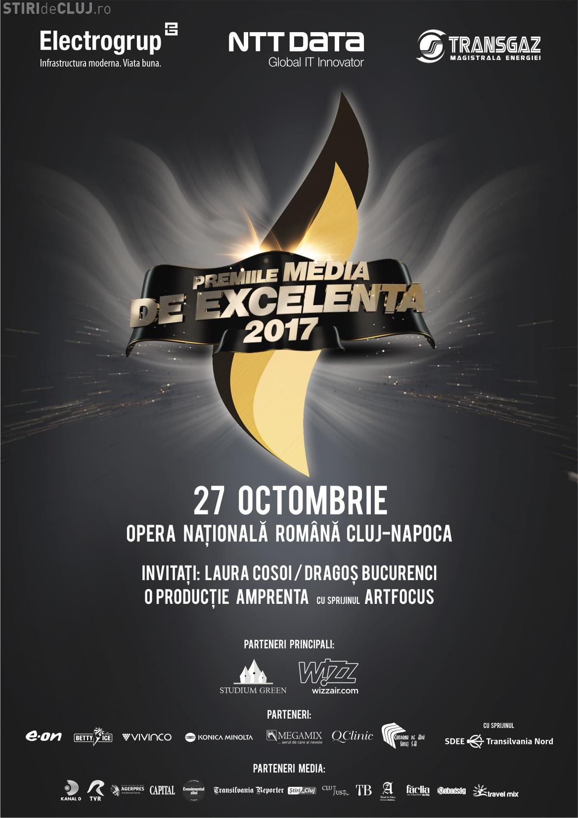 Vineri, 27 octombrie, pe scena Operei Naționale Române din Cluj-Napoca, va avea loc evenimentul jurnalistic PREMIILE MEDIA DE EXCELENȚĂ, proiect născut din dorința de a aduce recunoașterea celor care au ales să facă o schimbare pozitivă în societate, având o contribuție semnificativă la dezvoltarea orașului.