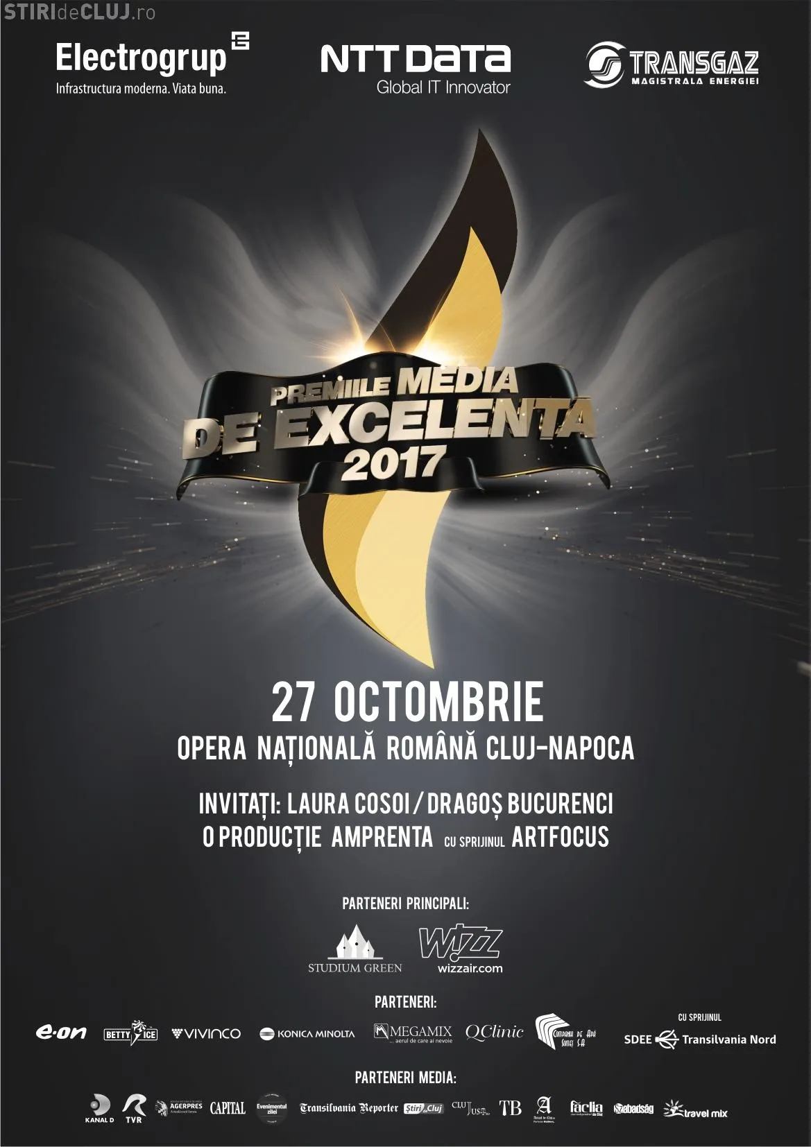 “Mă bucur mereu să revin la Cluj și să prezint un eveniment de calibru pentru oraș, Premiile Media de Excelență. Ne vedem în 27 octombrie la Opera Națională! “ – a declarat Dragoș Bucurenci.