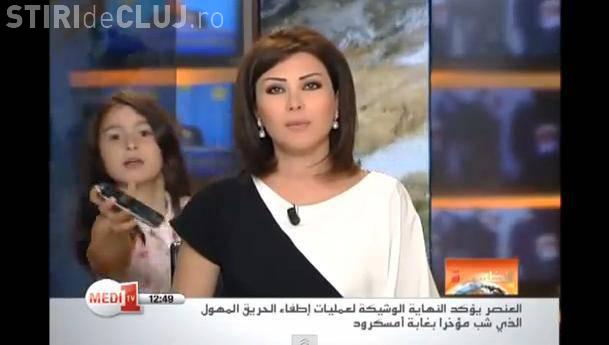 O prezentatoare TV din Maroc a fost întreruptă în timpul jurnalului de știri de fiica ei, care voia să ăi dea telefonul mobil.