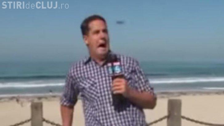 Reacția amuzantă a unui reporter speriat de un gândac. Totul a fost transmis live VIDEO