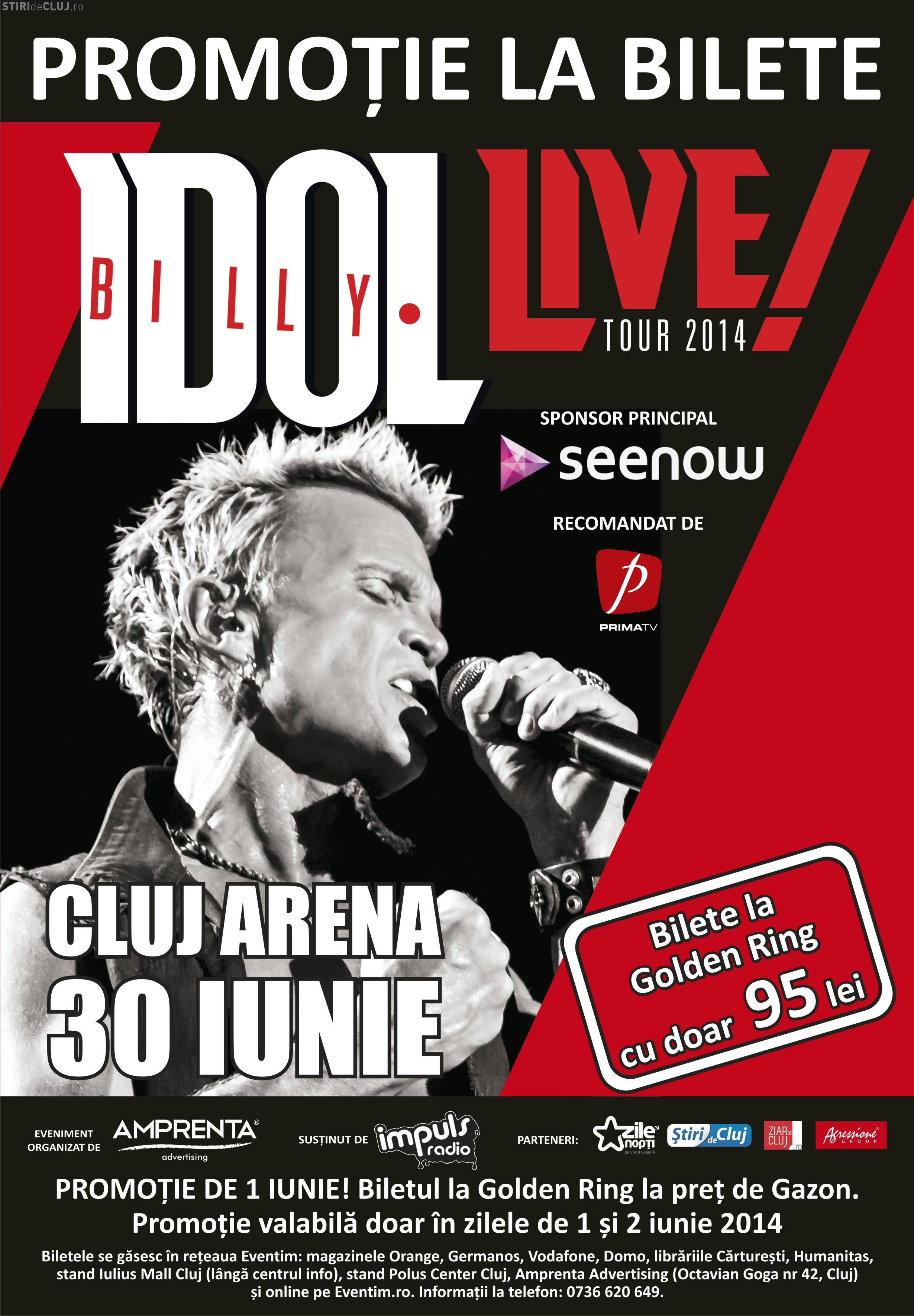 Iubitorii muzicii rock se pot bucura de reduceri speciale pentru biletele la concertul Billy Idol, ce va avea loc în data de 30 iunie pe Cluj Arena. Astfel, în 1 și 2 iunie, doritorii vor putea achiziţiona bilete la Golden Ring la preţ de Gazon: 95 lei!