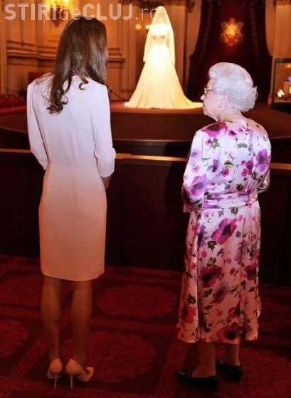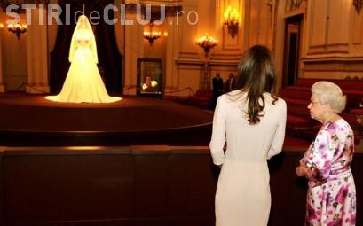 Regina Marii Britanii a vizitat impreuna cu nora ei, Kate, rochia de mireasa expusa la palatul Buckingham.
