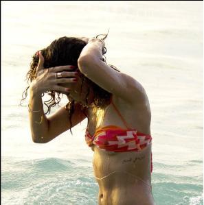 Cantareata in varsta de 23 de ani a fost fotografiata de catre paparazzi in timp ce era pe o plaja din Barbados.