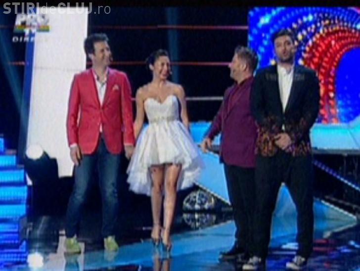 Cântăreața a avut părul strâns într-un coc și a fost lăudată de prezentatorilor emisiunii.