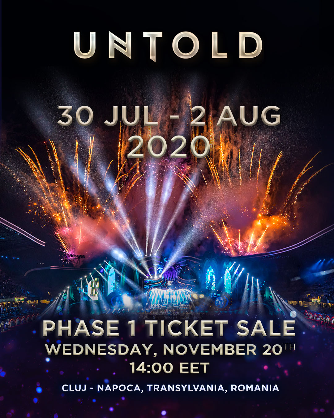 Unul dintre cele mai așteptate festivaluri de muzică din lume, UNTOLD își deschide porțile tărâmului magic, în anul 2020, în perioada 30 iulie-2 august. La cea de-a cincea ediție peste 375.000 de participanți veniți din întreaga lume au trecut pragul festivalului UNTOLD, și au trăit momente unice alături de cei peste 200 de artiști internaționali de pe cele 10 scene. Organizatorii și-au propus să-și depășească recordurile de la ediția aniversară din 2019, când festivalul a fost sold out încă din luna iunie.