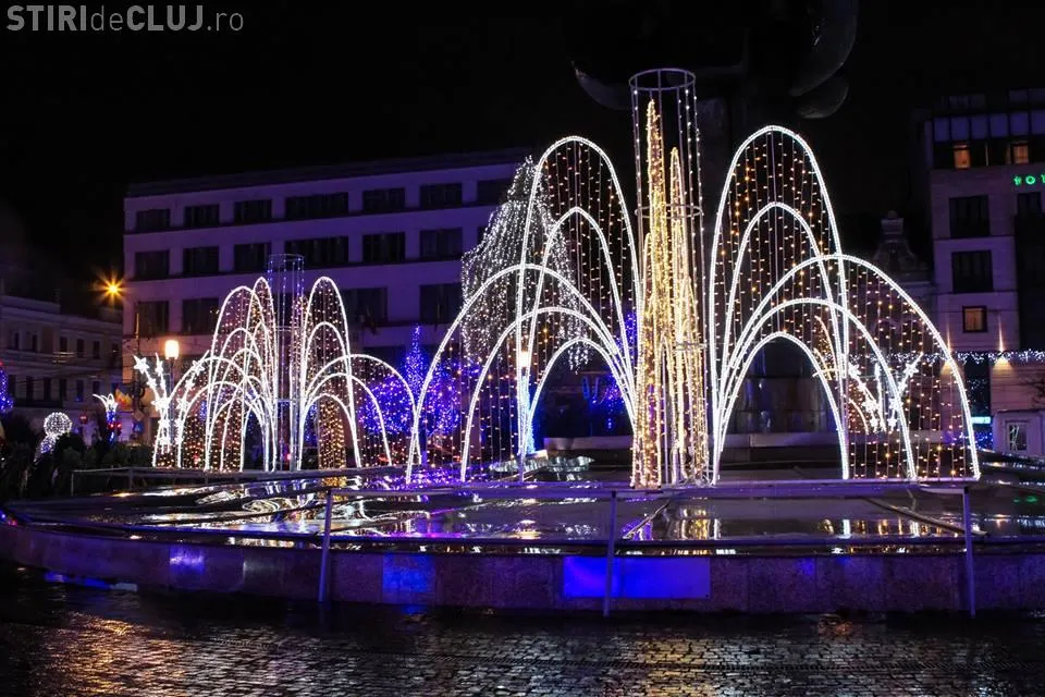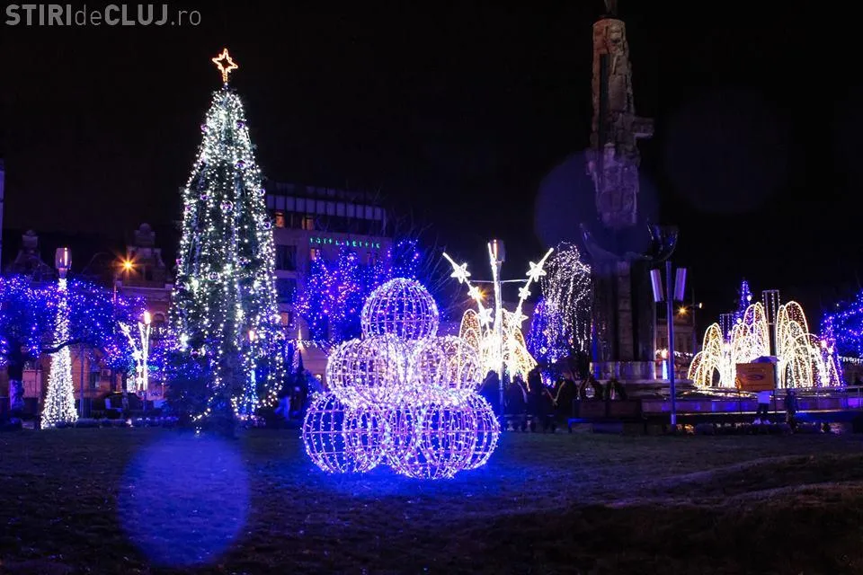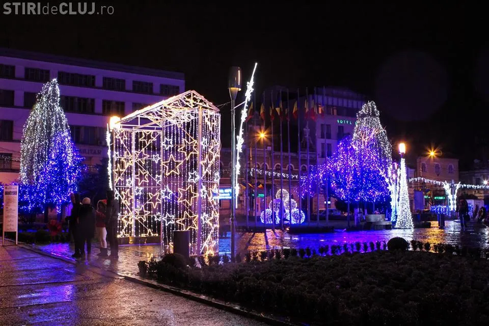 S-a aprins iluminatul festiv la Cluj. Vezi cum arată acum Piața Unirii FOTO