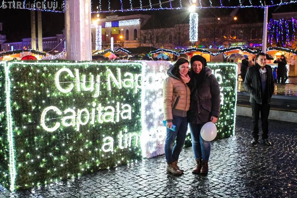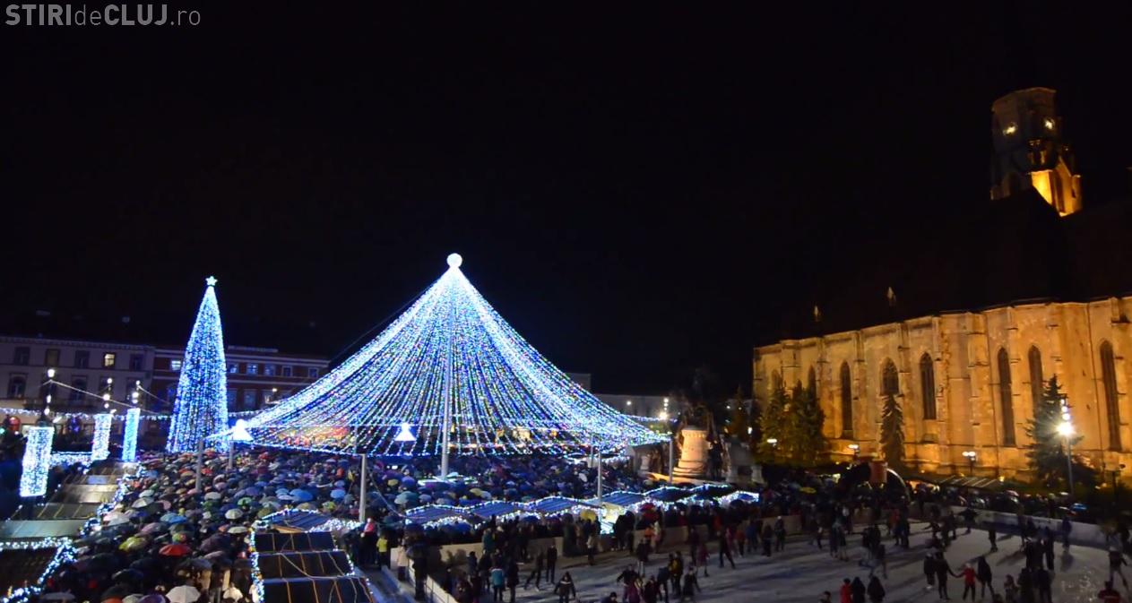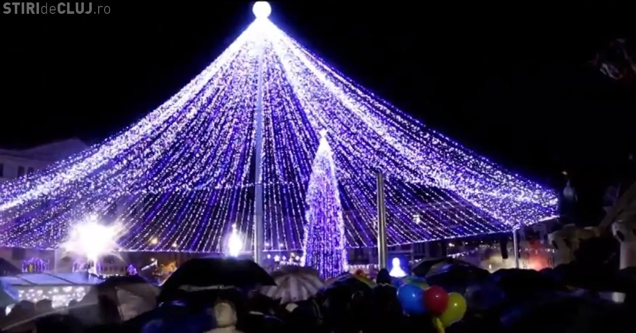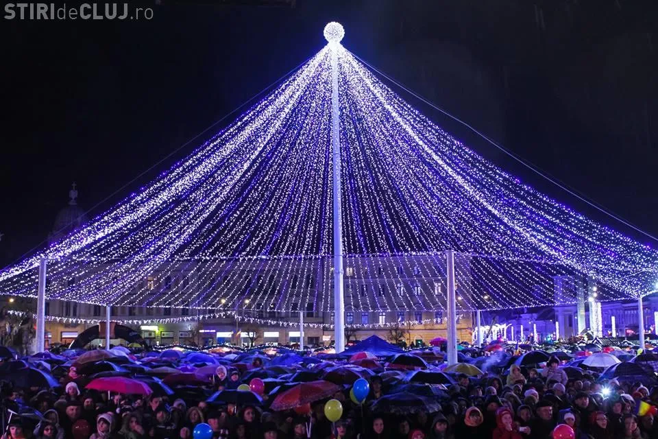 Chiar dacă vremea nu este favorabile, clujenii s-au adunat într-un număr mare la spectacolul din Piața Unirii și pentru a asista la aprinderea luminilor.