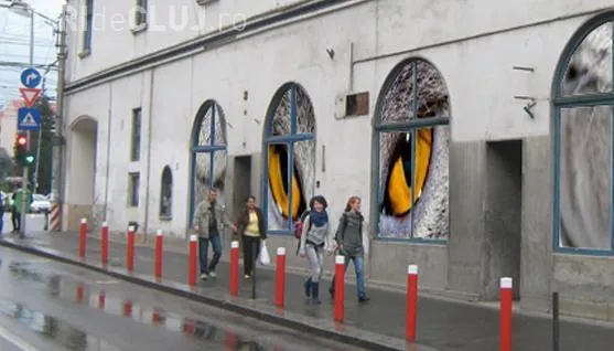 Saci menajeri in vitrina la fostul CEC si ochi de pisica pe Regele Ferdinand, sunt numai doua dintre cele 8 lucrari, care sunt expuse in vitrinele unor spatii comerciale abandonate din Cluj Napoca.