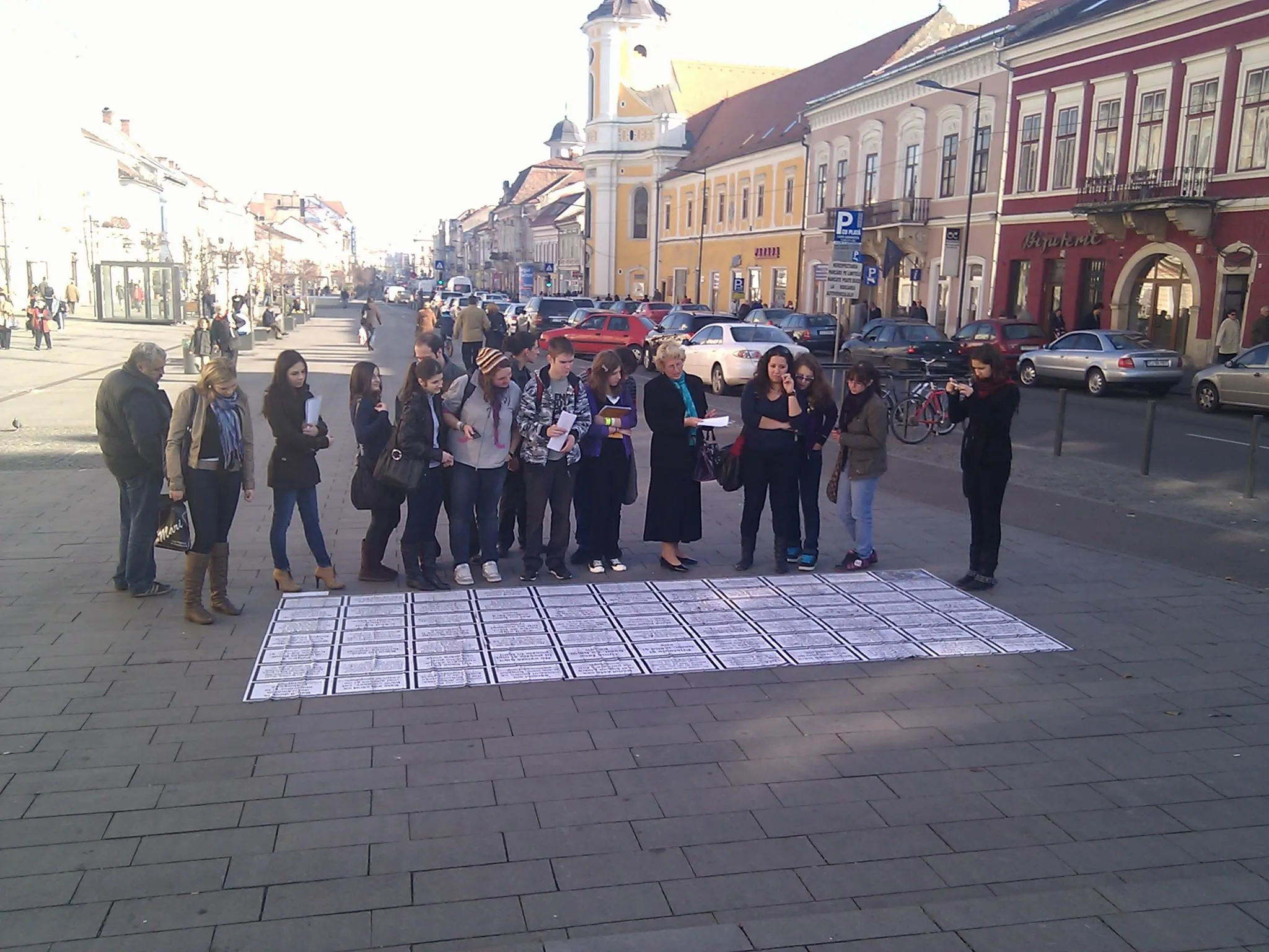 3. "Banii" autor: Koter Vilmos - interventie pe trotuar, bulevardul Eroilor f.n. (in spatele Monumentului Memorandistilor)