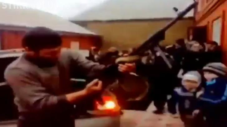 Un tată din Cecenia iși manifestă bucuria primei zi de școală a copilului său într-un mod neobișnuit.
