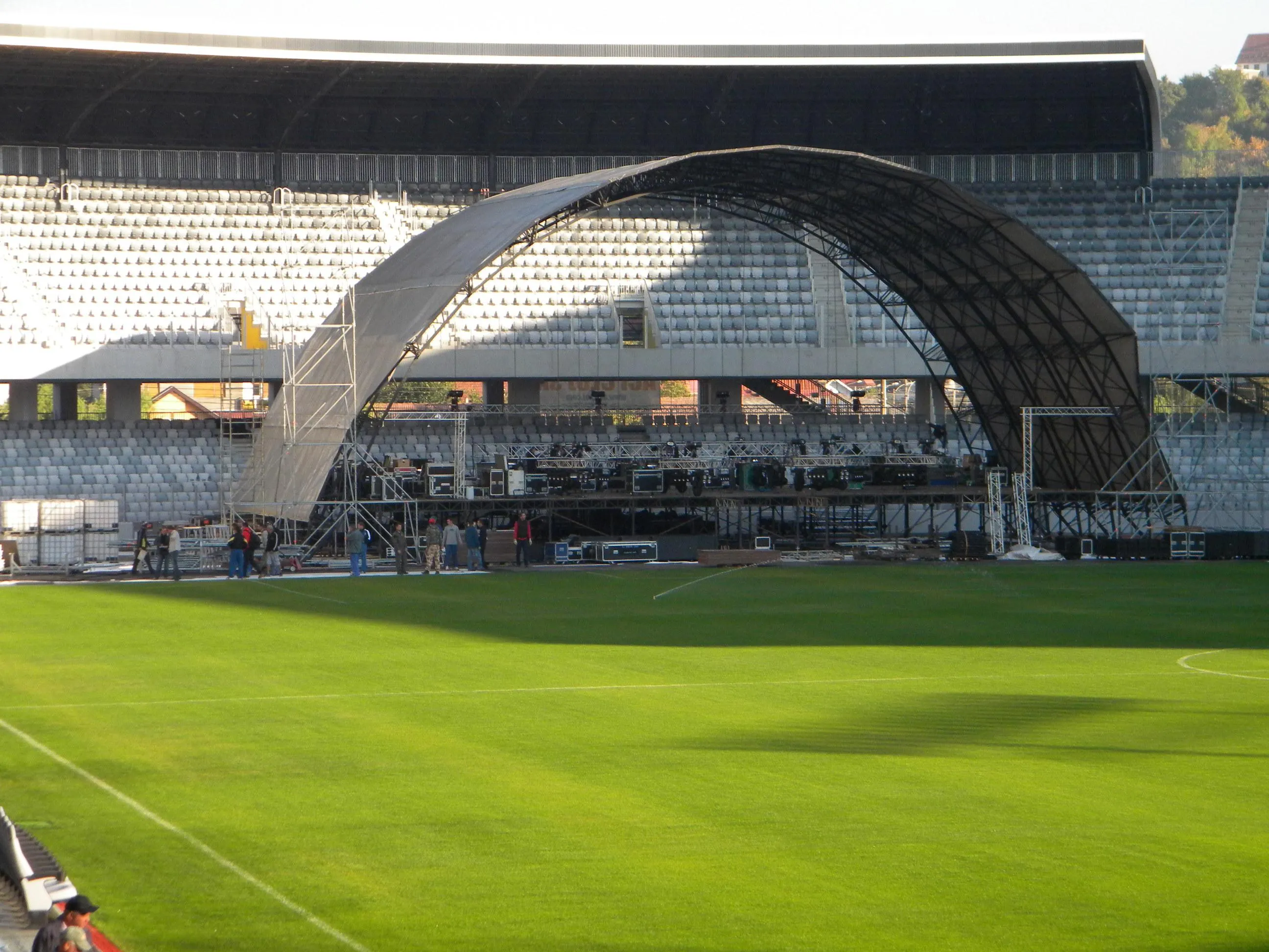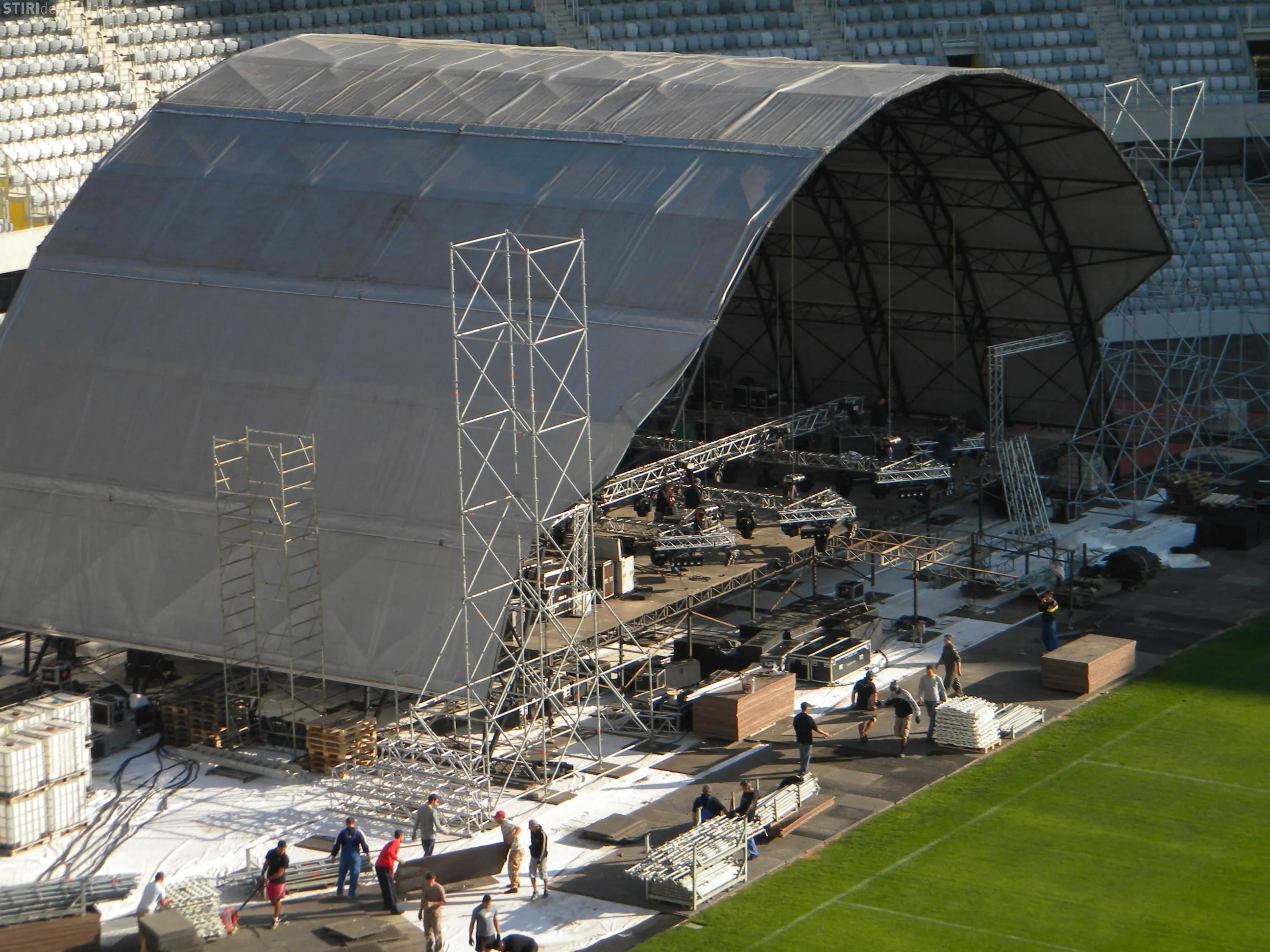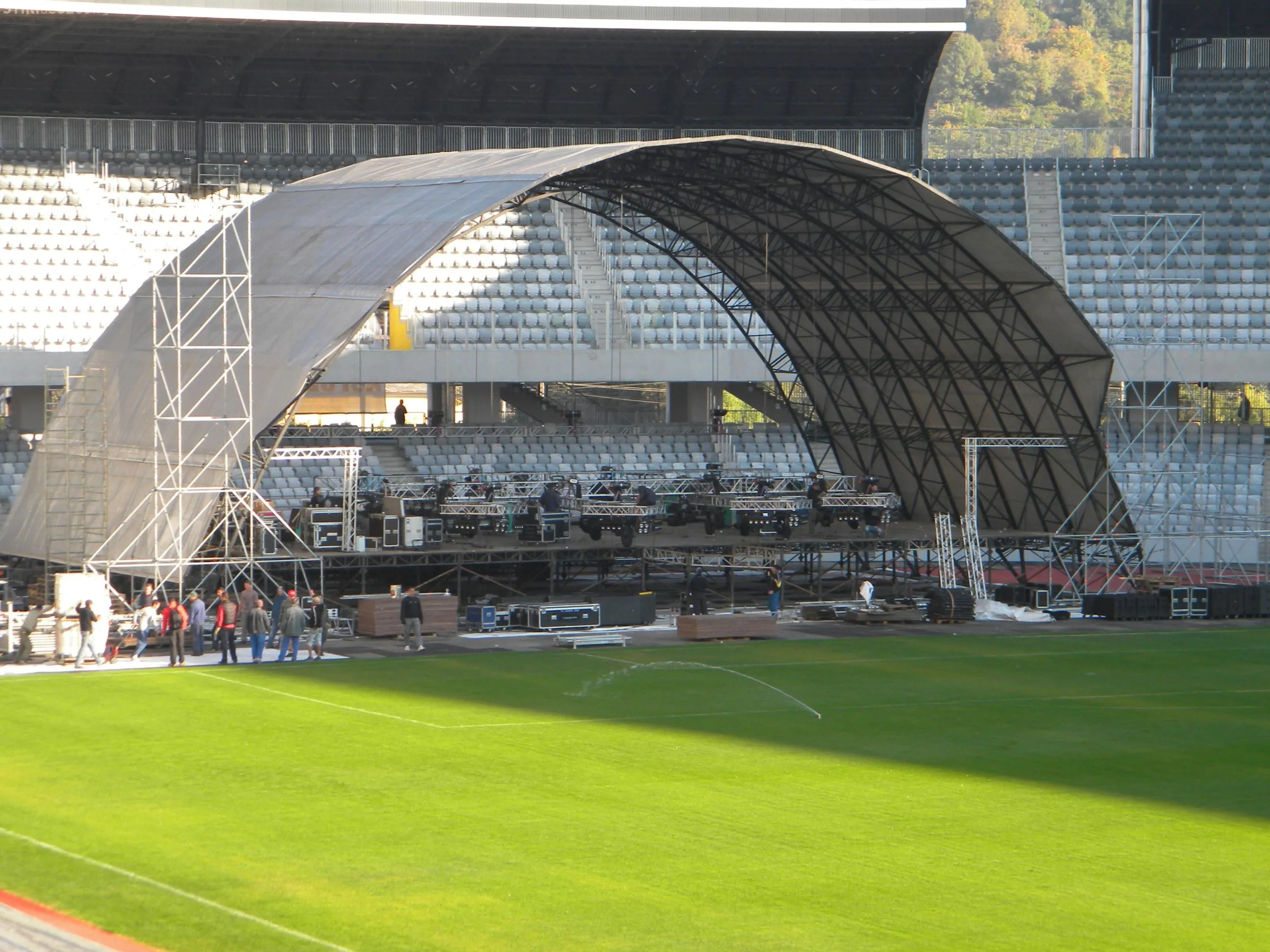 Scena pe care vor fi concertele are 27 de metri lungime si a mai fost folosita in Romania la Cerbul de Aur si alte concerte mari din Bucuresti.