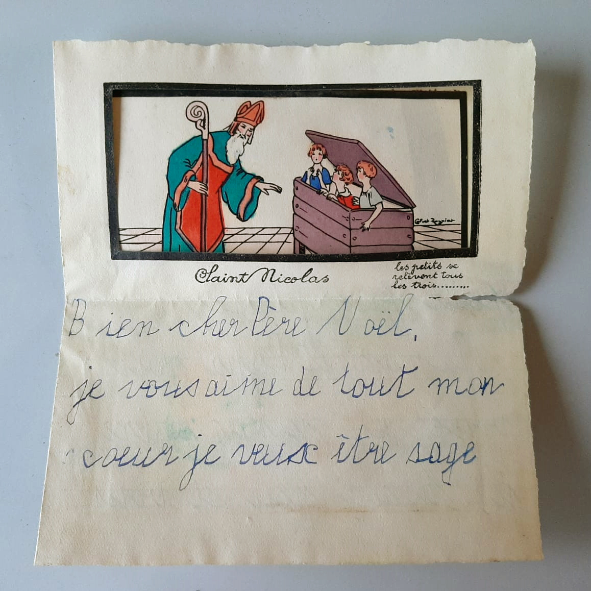 O echipă de arheologi din Aslacia, Franța, a descoperit în timpul unor săpături o scrisoare către Moș Crăciun, scrisă probabil de o fetiță în 1930.