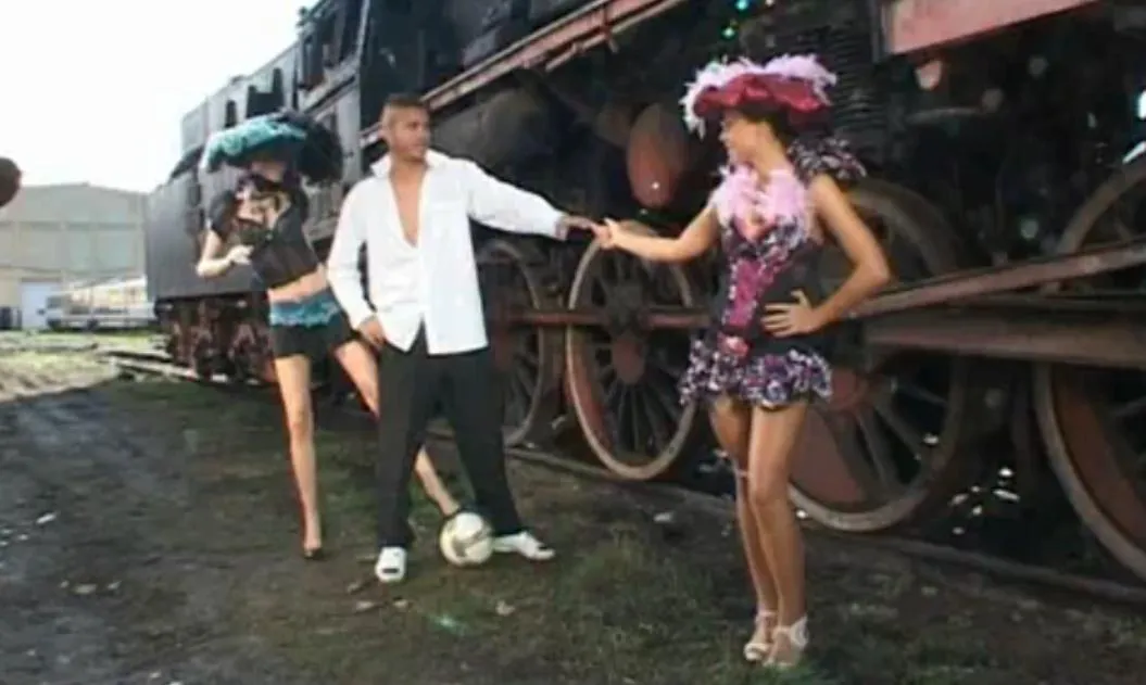 Jucatorii de la CFR Cluj au fost eroii unei sedinte foto "fierbinti". Imbracati sumar si insotiti de doua superbe tineri in costume de epoca, Nuno Claro, Tony, Cadu Peralta sau Dica s-au fotografiat langa o locomotiva veche.