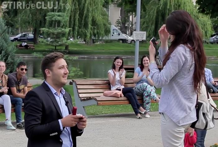 Un clujean și-a cerut iubita în căsătorie în fața clădirii Casino din Parcul Central.