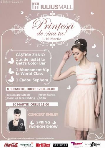 De asemenea, centrul comercial pregătește și alte surprize reprezentantelor sexului frumos. ”În primele zece zile ale lunii martie, Iulius Mall sărbătoreşte femeia prin evenimentele organizate în cadrul campaniei ”Prinţesă de ziua ta!”. Pe 10 martie 2013, de la ora 18.00, unul dintre cei mai iubiţi artişti ai momentului, Smiley, va încânta publicul feminin cu cele mai frumoase melodii de dragoste. Momentul muzical va fi completat cu Spring Fashion Show, prezentări de modă cu noile colecţii ale brandurilor din Iulius Mall.