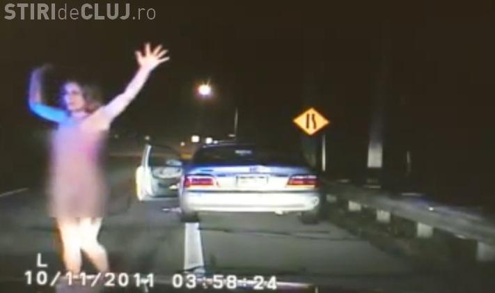 Soferita beata si dezbracata, oprita de politisti in trafic VIDEO