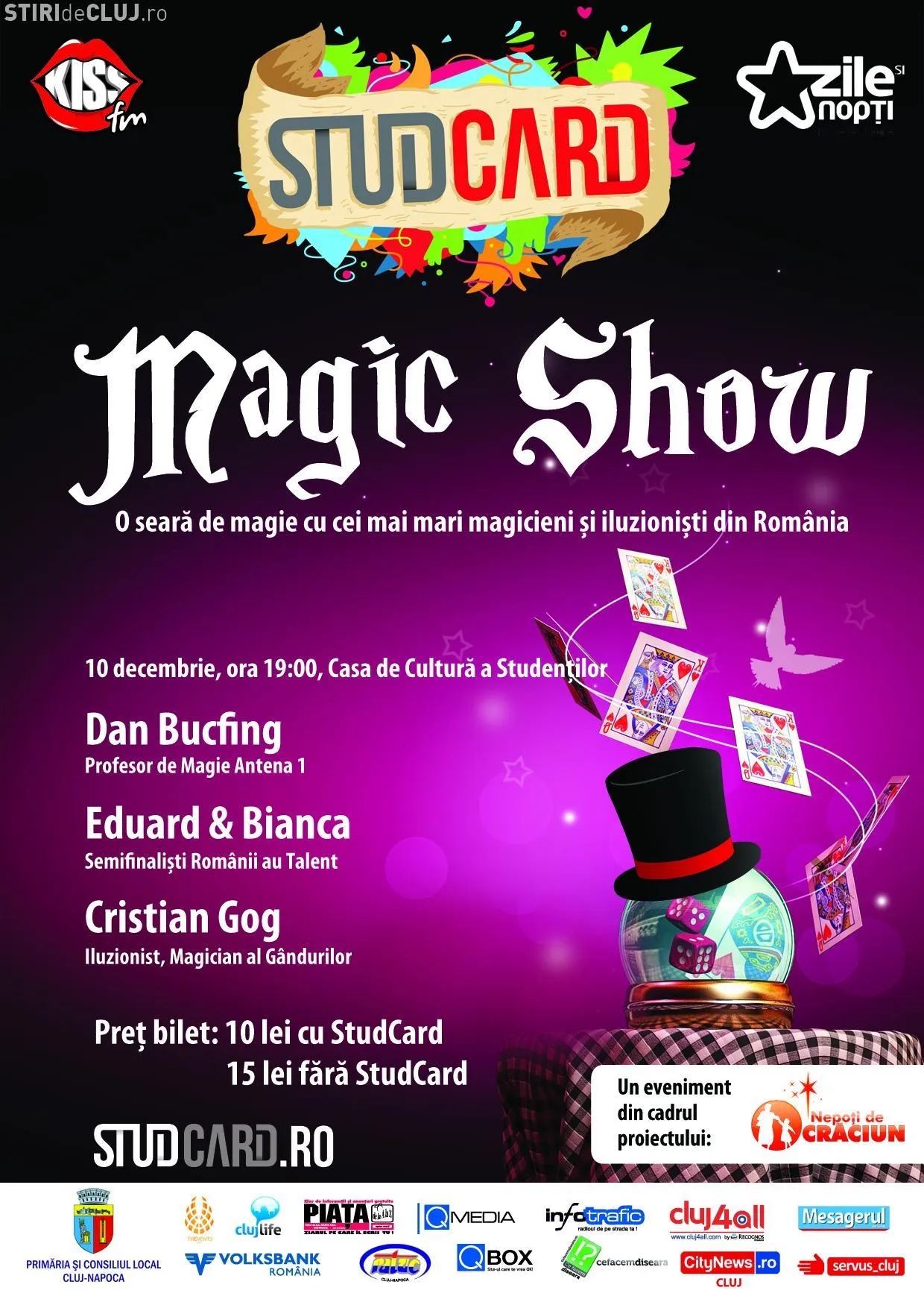 Un spectacol de magie sustinut de iluzionistul Cristian Gog, alaturi de Eduard si Bianca de la Romanii au Talent si Dan Bucfing va fi in aceasta seara de la ora 19.00 la Casa de Cultura a Studentilor.