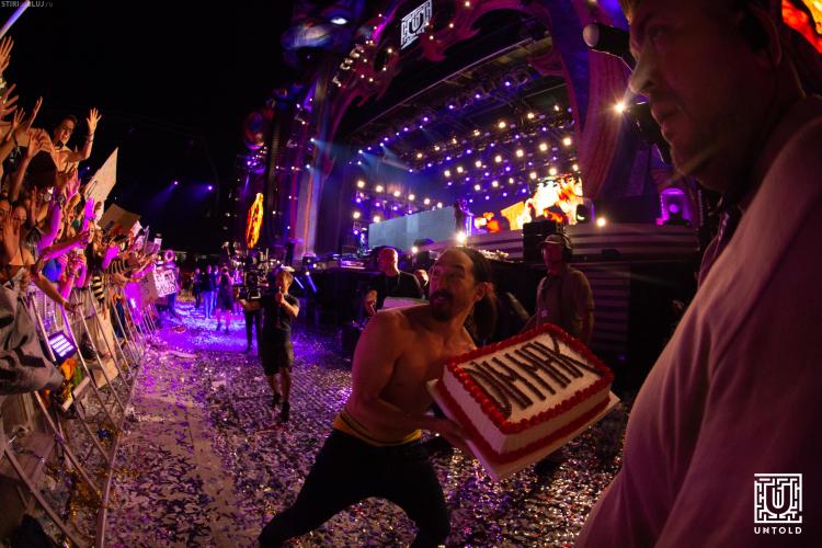 Steve Aoki a respectat tradiția și și-a răsplătit fanii la final cu 13 torturi delicioase. ”Festivalul UNTOLD mi-a schimbat viața! Anul trecut ploua cu găleata, era 7 dimineața și publicul totuși nu pleca acasă. Atunci am înțeles ce înseamnă când un român spune CAKE ME! E impresionant! E măreț ce se întâmplă la Cluj! E magic!”, a declarat STEVE AOKI.