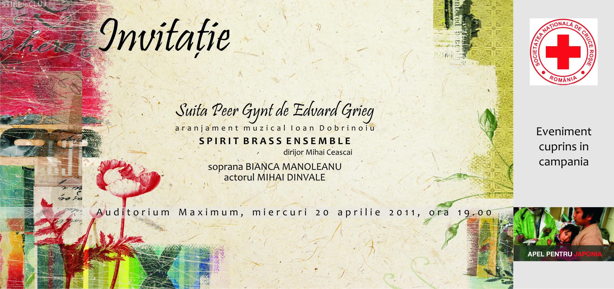 Societatea Culturala Filarmonia prezinta miercuri, 20 aprilie, in premiera mondiala Suita Peer Gynt de Edvard Grieg, sustinuta de Spirit Brass Ensemble din Bucuresti.