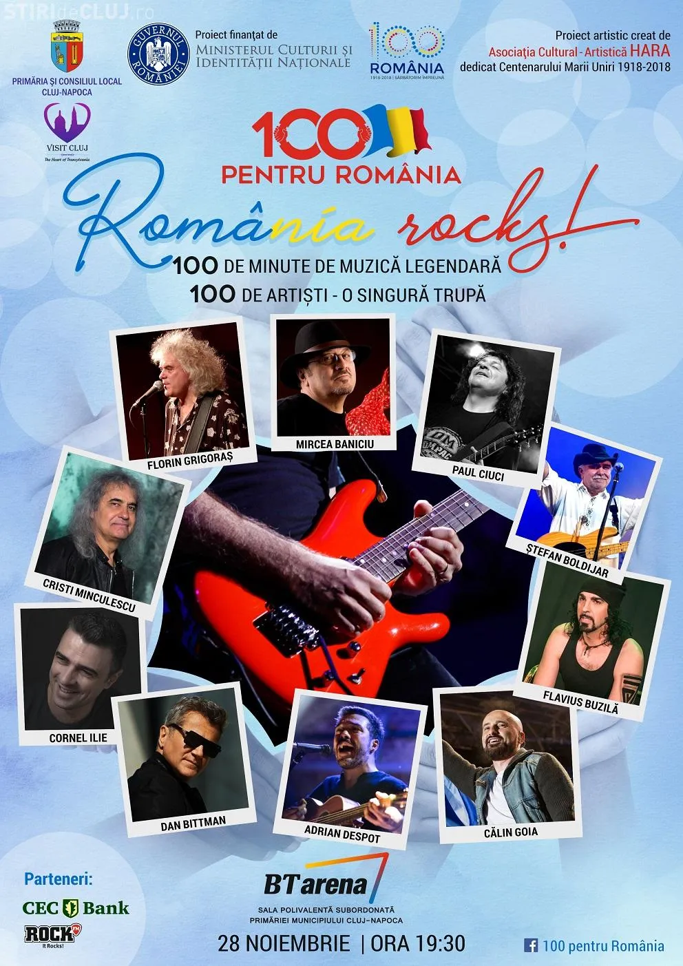 Proiectul ”100 pentru România” este o premieră muzicală pentru România și este organizat de Asociația Cultural – Artistică Hara, finanțat de Ministerul Culturii și Identității Naționale iar evenimentul de la Cluj-Napoca a fost organizat în parteneriat cu Primăria și Consiliul Local Cluj-Napoca, având partener principal CEC Bank.