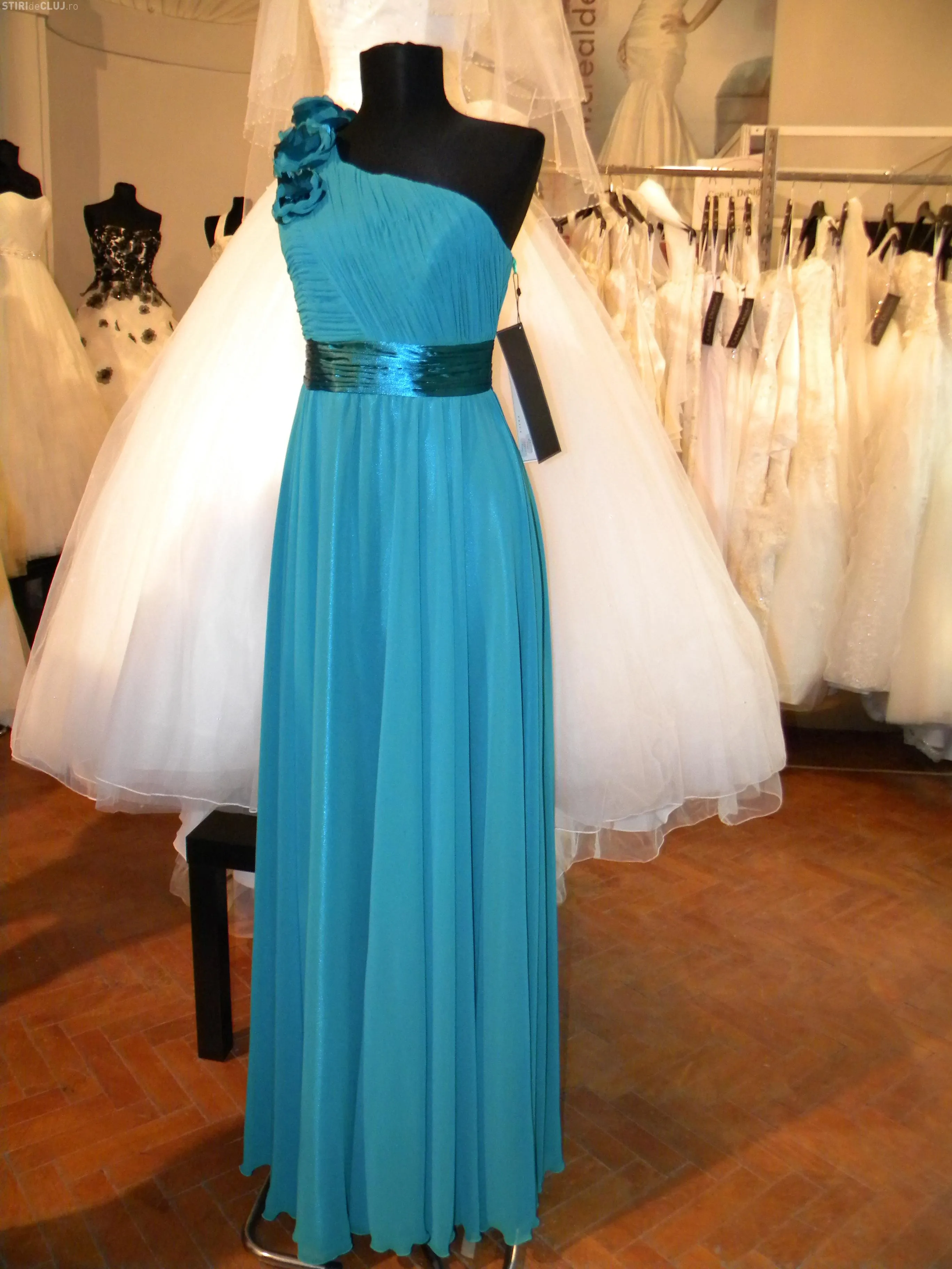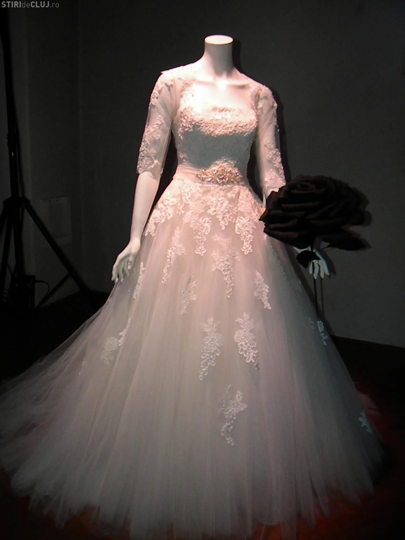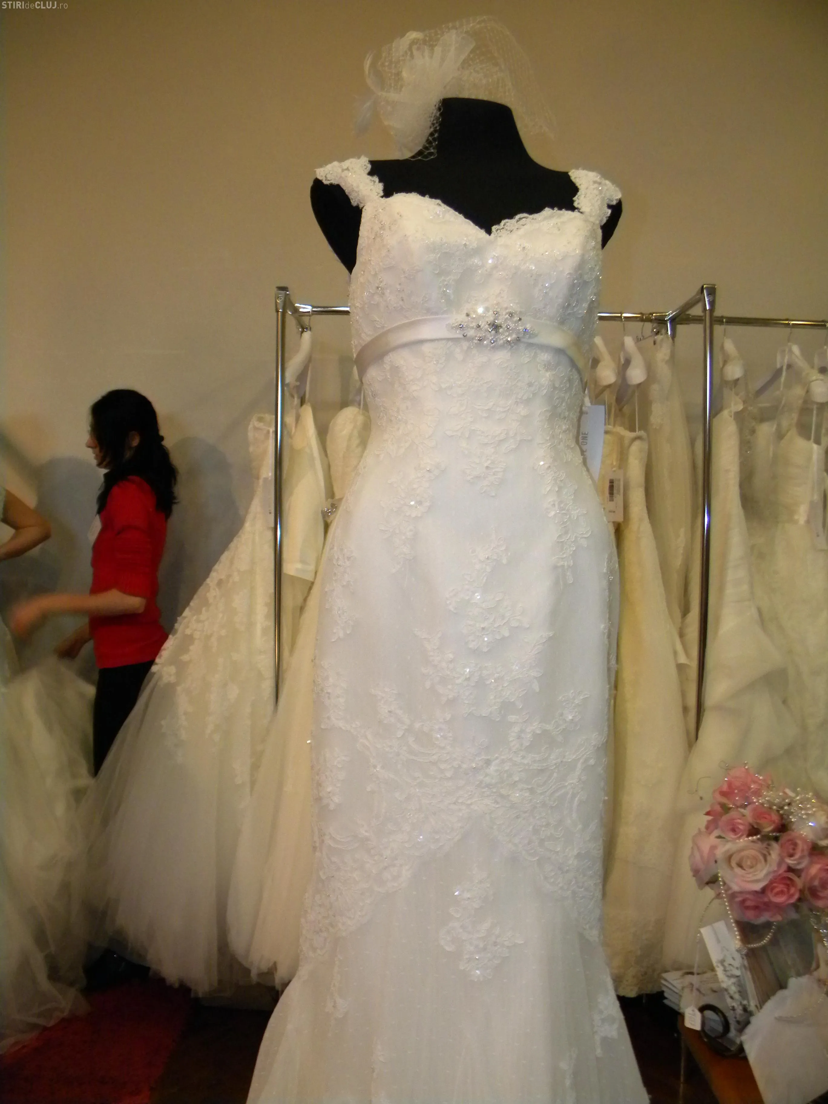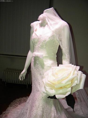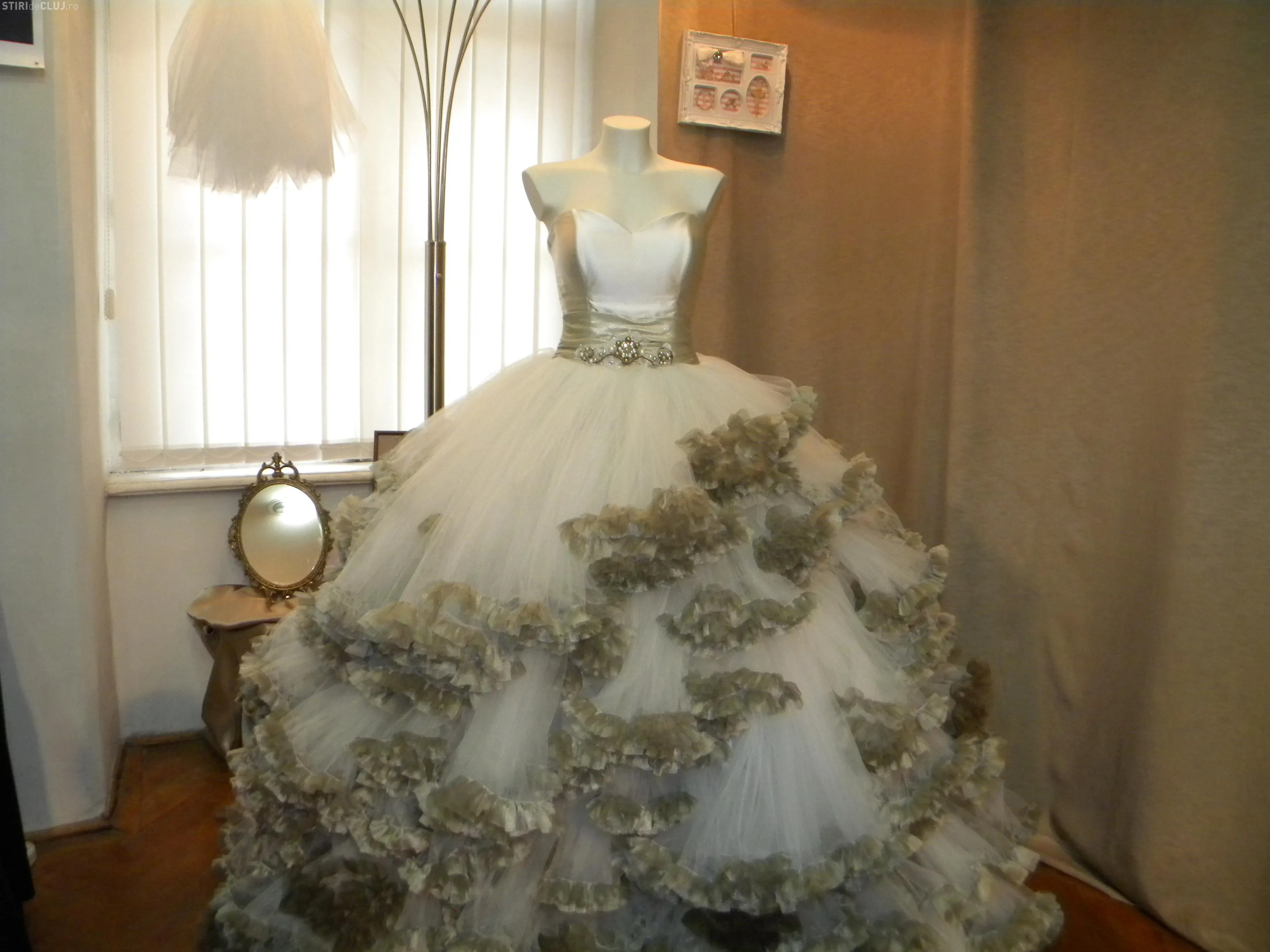 ”Este o rochie gri cu accente vernil de mireasă, pentru miresele foarte îndrăznețe. Anul acesta se poartă foarte mult rochiile vaporoase. Cea mai scumpă rochie de mireasă poate ajunge la 3.000 - 4.000 de euro.