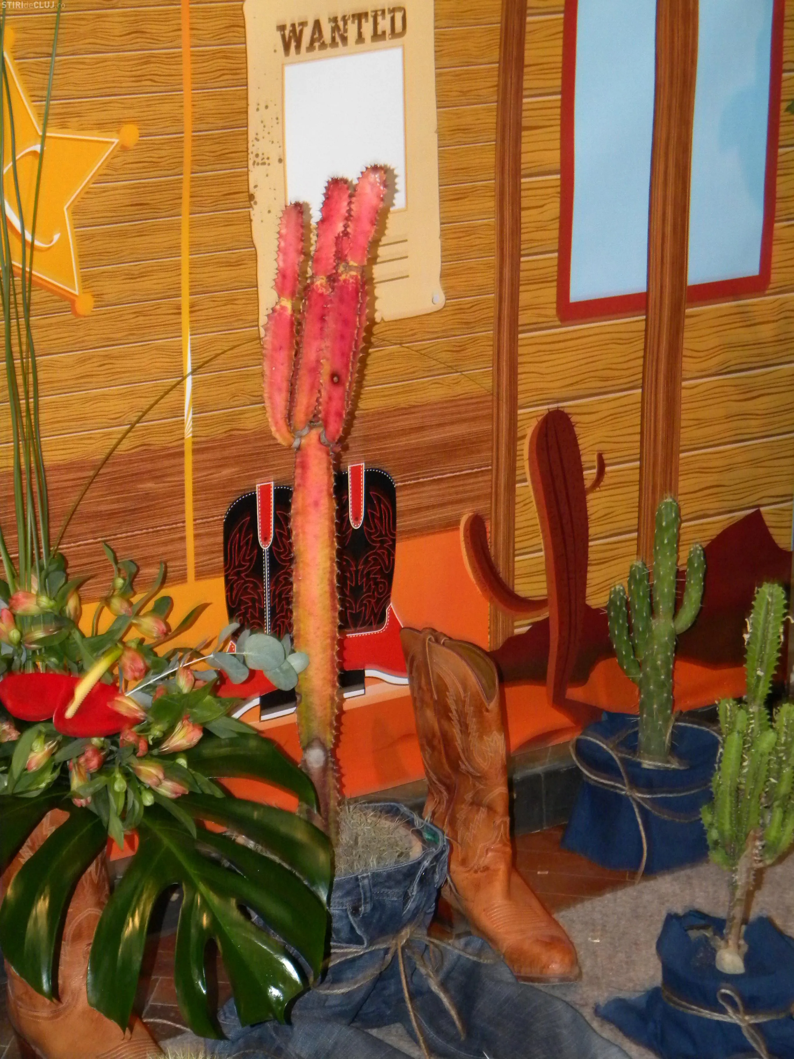 Nunta cu decor western este specială, cu decor cu cactuşi, dar şi căluţi confecționați din flori. ”Am vrut să oferim tinerilor perechi o nuntă cu o tematică inedită, cea western, ca în Texas, care include cactuşi, dar şi căluţi din crizanteme. Cactuşii simbolizează eternitatea şi o perioadă foarte lungă, şi vrem să păstrăm legătura cu clienţii şi după nuntă, la botez. Unul dintre căluţii din crizanteme are o şa din nasturi, iar celălalt din blăniţă naturală. Oferim la nuntă aranjamente florale cu flori specifice Vestului Sălbatic, iar pentru mireasă un buchet texan, cu flori de cactuşi, cu flori verzi sau cu cele care aduc mai mult a uscat, dar putem folosi şi flori cu culori calde. Vrem să ne modelăm aranjamentele noastre după gustul şi bugetul fiecărui cuplu. Un căluţ din crizanteme costă, în funcţie de mărime, de la 400 la 2000 de lei”, a declarat reprezentanta firmei care oferă aceste decorațiuni