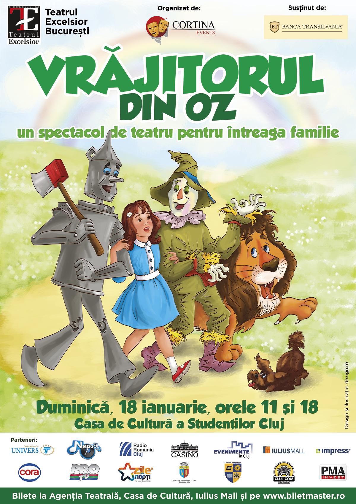 Teatrul Excelsior prezintă spectacolul Vrăjitorul din Oz, dupa povestea nemuritoare scrisă de Lyman Frank Baum, care a încântat copilăria multor generații cu personajele sale de neuitat: Dorothy, cățelul Toto, Sperietoarea de ciori, Omul de tinichea, Leul cel laș, Vrăjitorul din Oz, Vrăjitoarele bune și cele rele, Regele maimuțelor înaripate sau Regina șoriceilor.