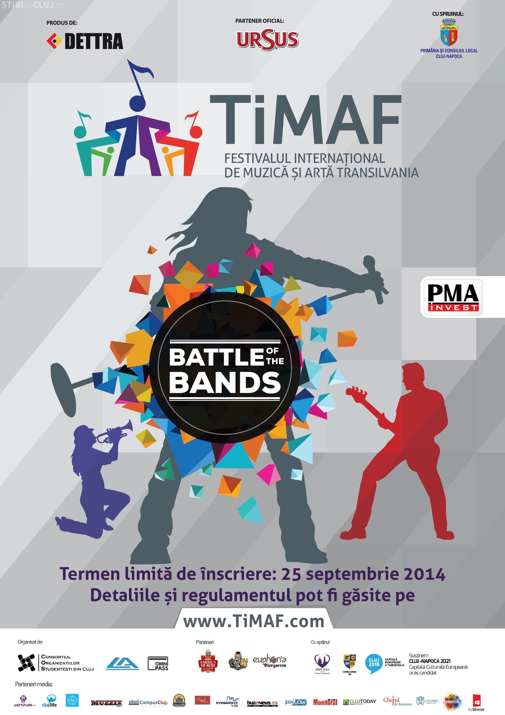 Organizatorii Festivalului Internaţional de Muzică şi Artă Transilvania – TiMAF 2014 anunţă deschiderea celor două competiţii importante ale festivalului: “TiMAF Battle of the Bands” şi “TiMAF Dance Competition”.