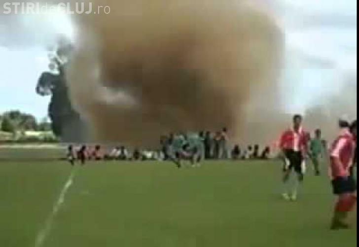 În toiul unui meci de amatori din Brazilia a avut loc un eveniment straniu, o tornadă s-a format chiar pe terenul pe care se disputa partida de fotbal.