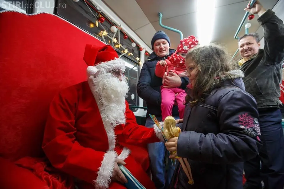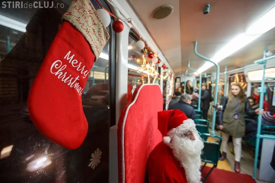 Tramvaiul lui Moș Crăciun a pornit la drum prin Cluj. Vezi care este programul de circulare FOTO